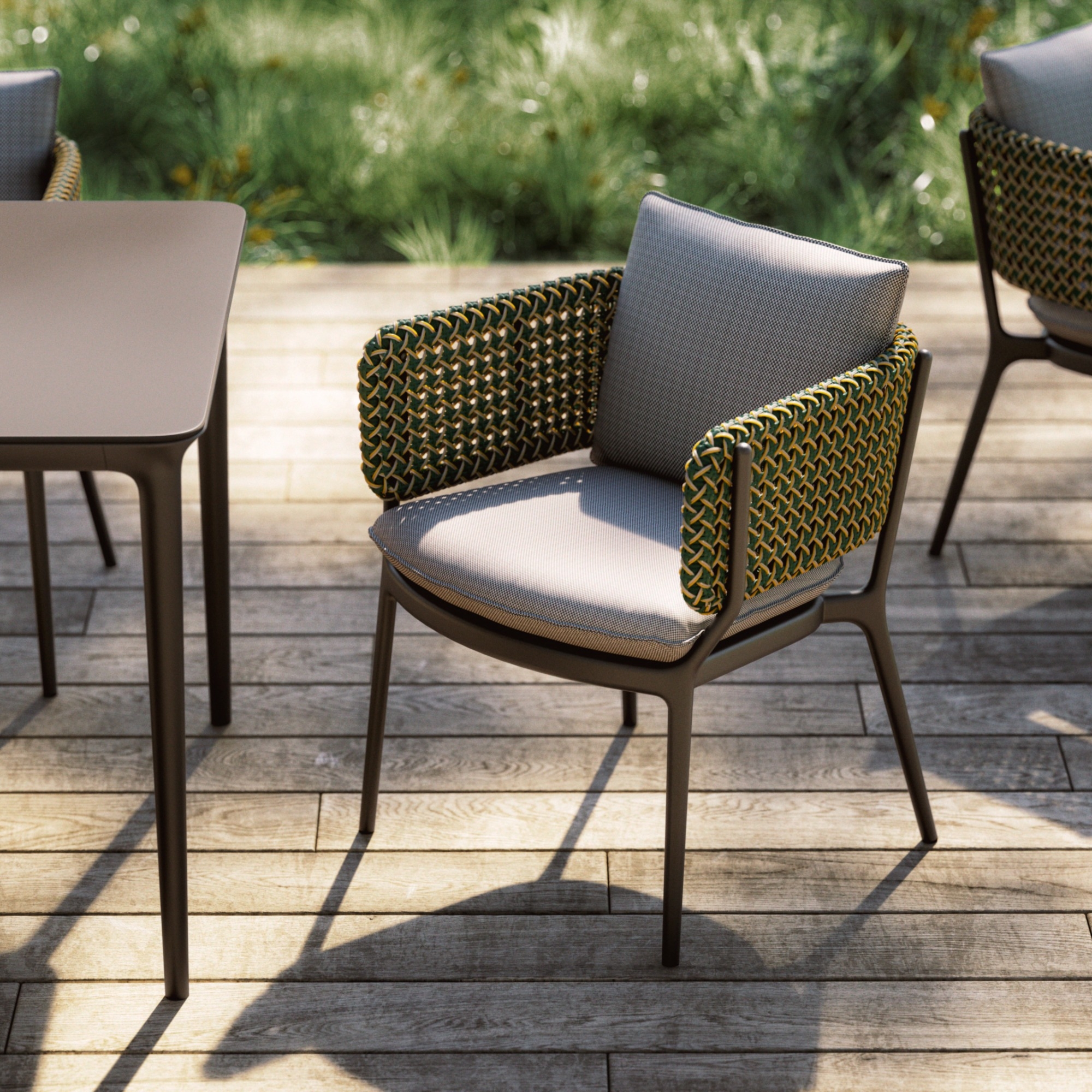 BELLMONDE verbindet modernes Design mit einem klassischen melangeartigen Geflecht aus der luxuriösen DEDON-Faser. Die harmonische Formensprache vereint Gemütlichkeit und Esprit. Von Henrik Pedersen entworfen, bildet der Sessel individuell platziert, oder in Gruppen arrangiert eine natürliche Ergänzung für jedes Setting.