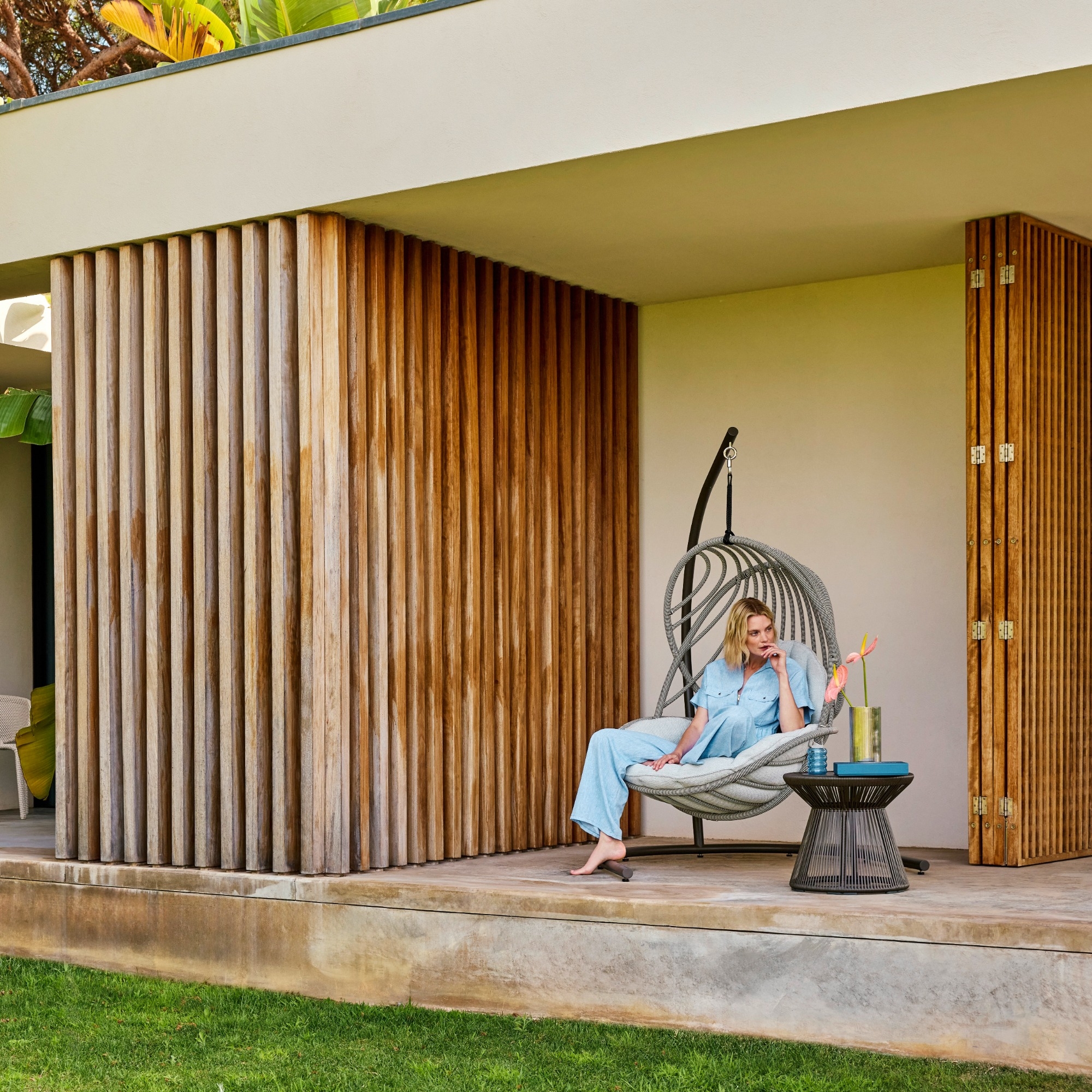 CIRQL NU wurde mit der innovativen Invert-Faser von DEDON hergestellt und steht sowohl für die nächste Evolution der Kollektion als auch der DNA des Unternehmens. Die neueste Kollektion von Werner Aisslinger wird mit Co-Extrusion hergestellt, einem Verfahren, bei dem zwei verschiedene Faserfarben und -typen in einem Strang kombiniert werden. Das Ergebnis: atemberaubende Farbkombinationen, vielfältige Texturen und geometrische Muster mit einem speziellen 3D-Effekt, der je nach Betrachtungswinkel einen fast schillernden Glanz erzeugt.