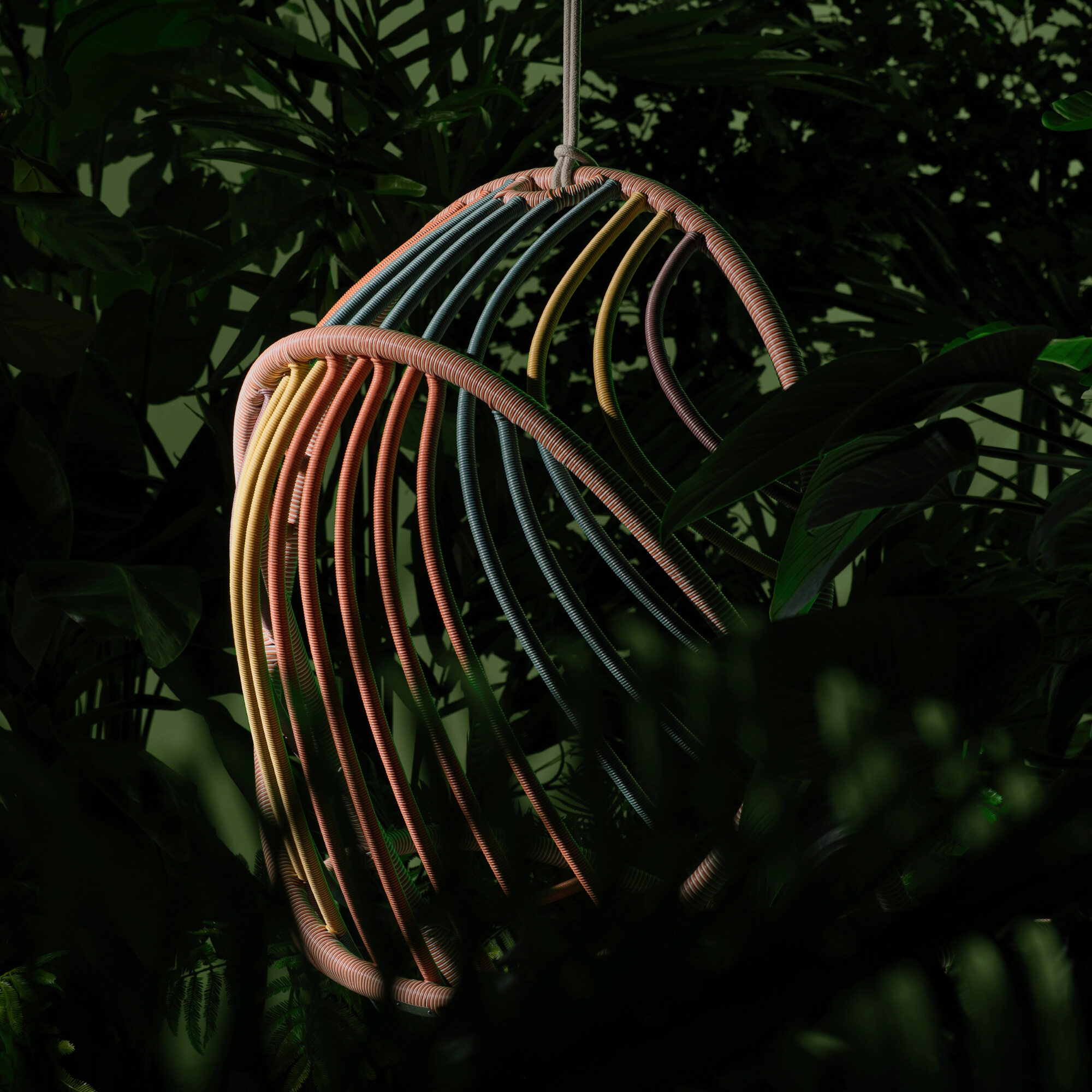 Mit KIDA hat Stephen Burks einen Hängesessel entworfen, der sowohl optisch als auch in der Nutzung reizvoll ist. Als erste Kollektion, die nicht in DEDON Faser geflochten, sondern gewickelt wurde, weist der KIDA Hängesessel eine wiegenartige, organische Form auf, die offen, luftig, leicht und einladend ist. Einmal im Sessel sitzend, bietet KIDAs Kissen, das die gesamte Sitzfläche bedeckt, einen unvergleichlichen Komfort. Beim Schwingen entsteht nach Burks eigenen Worten das Gefühl „so frei wie der Wind“ zu sein. Mit seinem organisch geformten Rahmen aus pulverbeschichtetem Aluminium ist KIDA leicht und dennoch außergewöhnlich stabil. Umhüllt von der innovativen DEDON Fiber Touch, die eine besonders weiche Haptik aufweist, wird die Kollektion in drei gestreiften Farbvarianten angeboten, darunter das lebhafte, mehrfarbige Glow Touch. Stephen Burks über die Farbpalette: „Als ich sah, wie raffiniert die neuen Farbentwicklungen von DEDON sind und wie erfolgreich sie die gesamte DEDON-Kollektion miteinander verbinden, ergriff ich die Chance, so viel von der neuen Palette in mein neues Projekt zu integrieren wie möglich. Die Logik in diesem Design ist die Umwicklung des graphischen Rahmens, die Farbgebung geschah eher zufällig.“ KIDA verfügt über ein extraweiches Sitz- und Rückenkissen, das perfekt zum Liegen und Entspannen positioniert ist.
