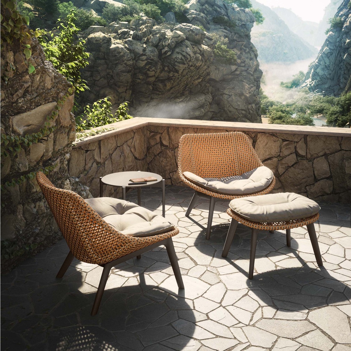 - Lebendiger Materialmix aus handgeflochtener DEDON Faser und hochwertigem Teakholz oder Aluminium