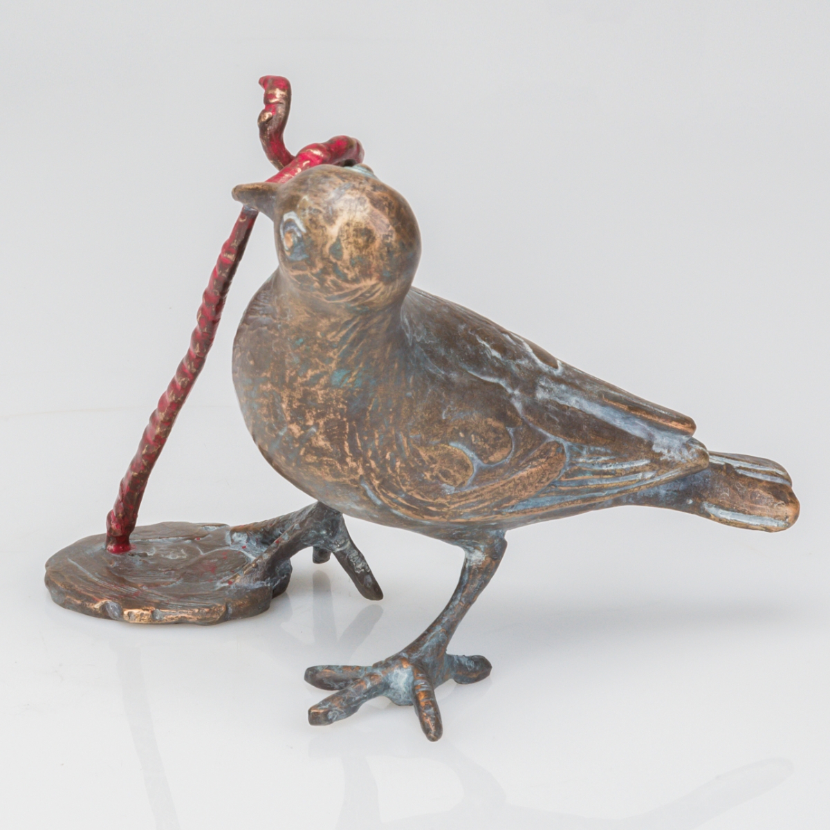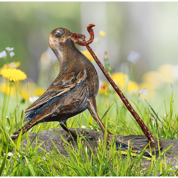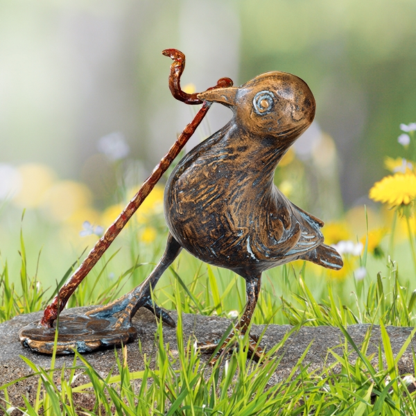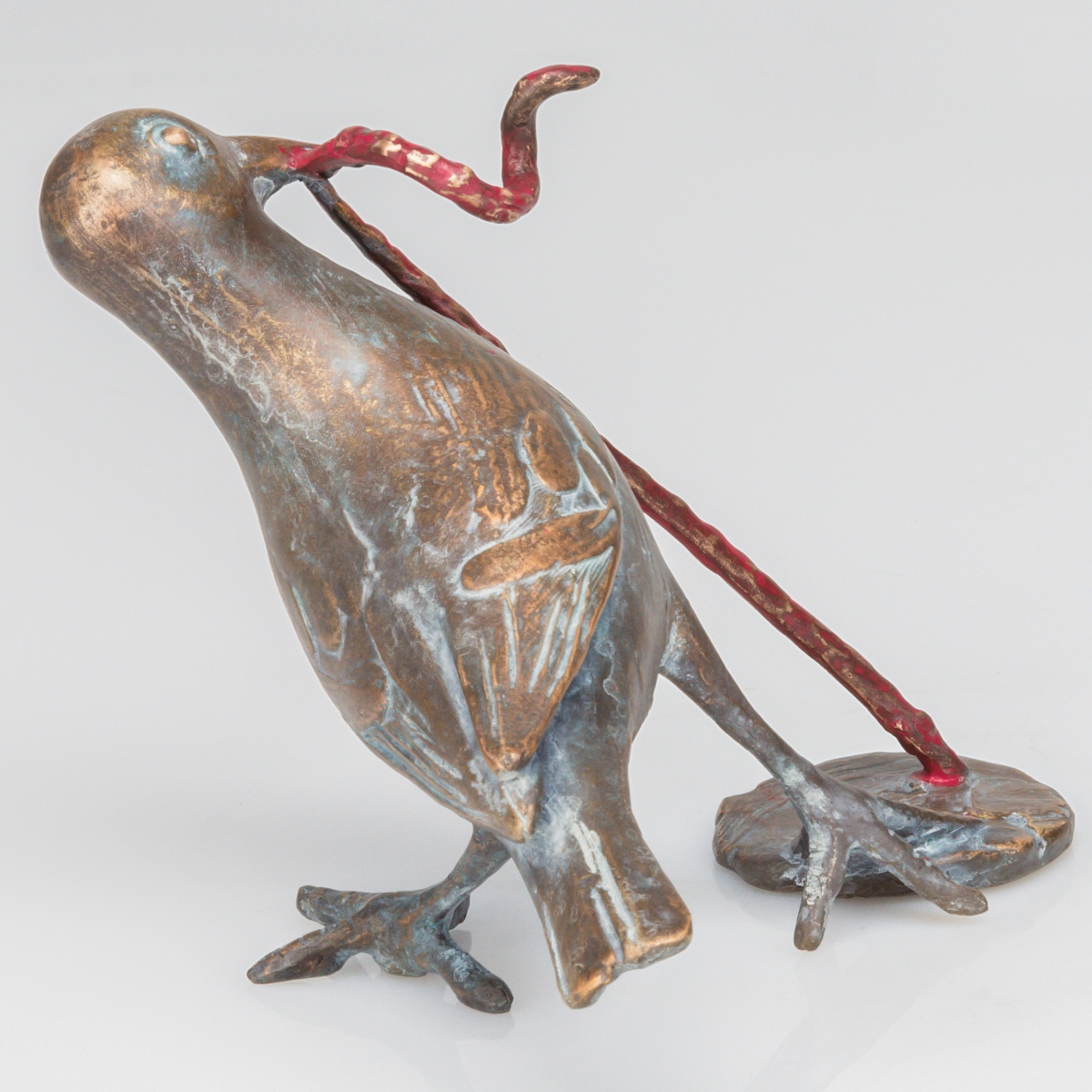 Edition Strassacker Bronzefigur "Vogel mit Wurm"