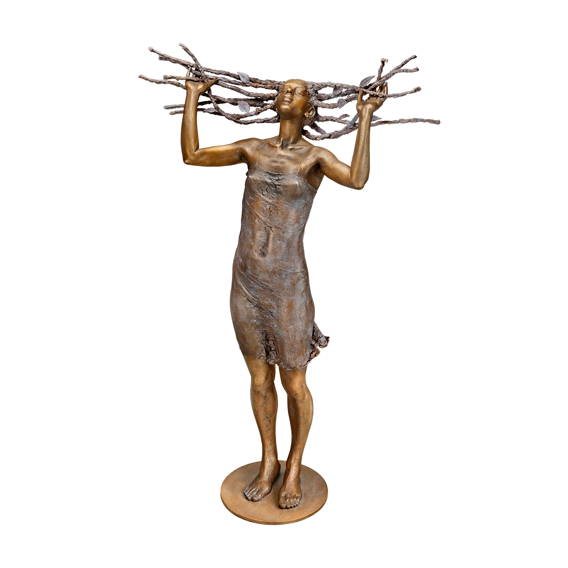 Es ist die frühlingshafte Natur selbst, die sich hier in dem neuen Werk von Pawel Andryszewski feiert. Andryszewski zeigt sie in Gestalt einer jungen Frau, die sich an den ersten warmen Tagen des Jahres erfreut. Sie hat den leichtbekleideten Körper der wärmenden Sonne zugewandt und schüttelt ihr Haar aus, wobei dieses von Knospen und Blättern durchdrungen ist.