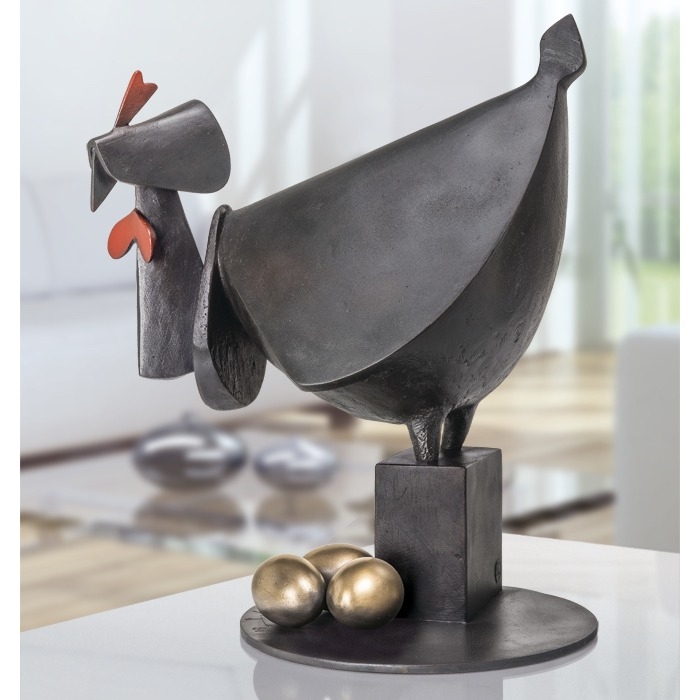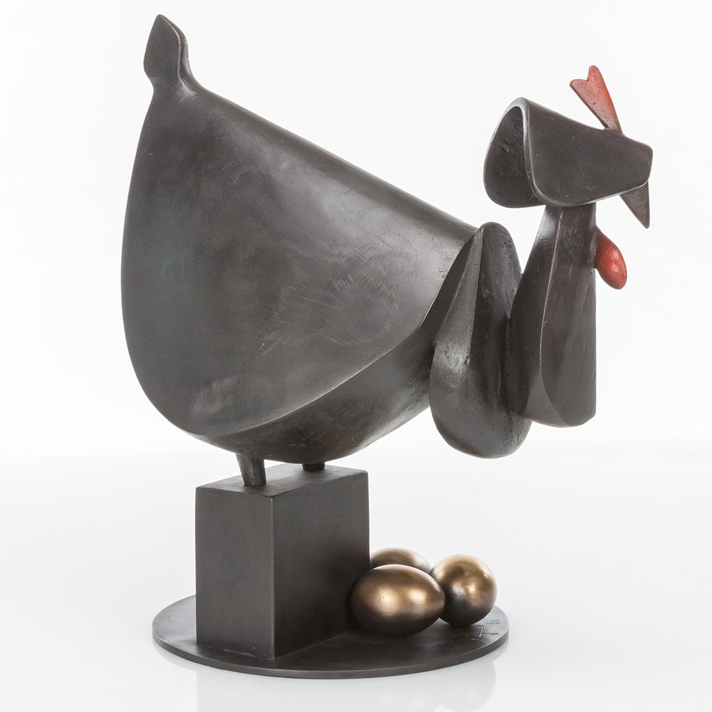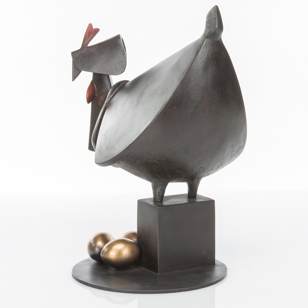 Edition Strassacker Bronzeskulptur "Die schwarze Henne legt abends ihre Eier" von Rinaldo Bigi - limitiert