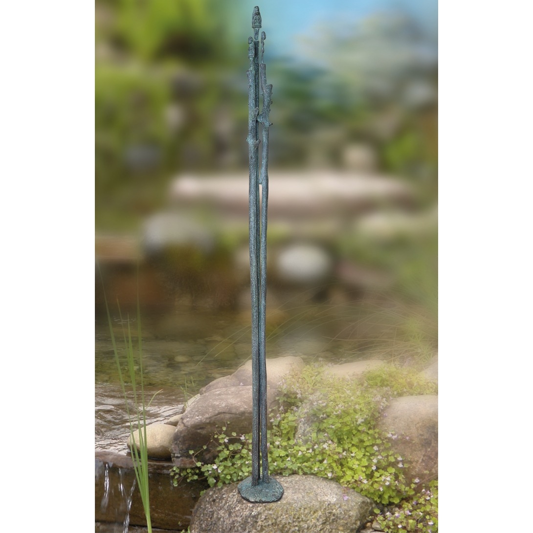 In alten Sagen früher Kulturen ist der Mensch aus einem Baum entstanden. Dies war die inspirierende Idee für den Künstler. Die hoch aufgerichtete und schlanke Stele versinnbildlicht Bäume, die auf ihrer Spitze eine weibliche Idolfigur tragen. Ein Symbol für die Essenz des Lebens: Das Vertikale zeugt von Stärke und Wachstum und weist auf die Vitalität des Menschen hin; und die weibliche Gestalt wird von jeher mit Fruchtbarkeit konnotiert. Doch es geht auch um den menschlichen Geist, der danach strebt, sich zu erheben und zu wachsen – wie in einem „Garten“.