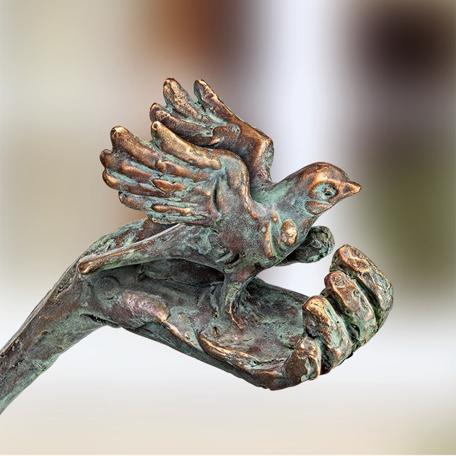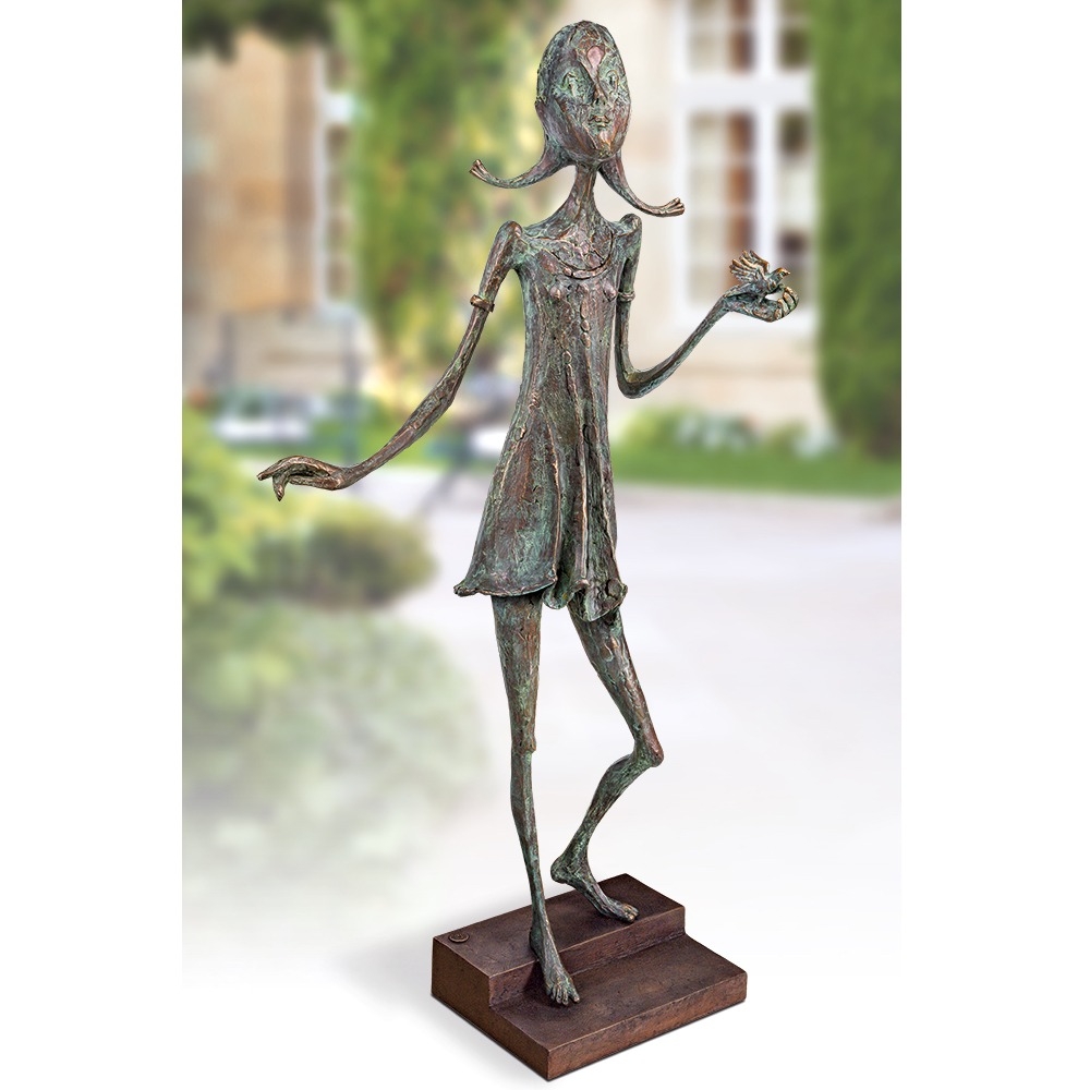 Edition Strassacker Bronzeskulptur "Mädchen mit Vogel" von Kurtfritz Handel - limitiert auf 9 Stück