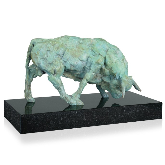 Alle Muskeln angespannt, den Kopf tief zum Angriff gebeugt: Martin Pottgiessers Stier strotzt vor Kraft.