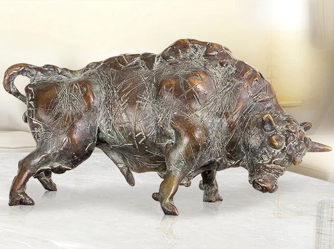 Der Künstler Waldemar Schröder hat es geschafft diesem Bronze-Stier eine besondere Ausdrucksstärke zu verleihen, sodass man den Willen und die Kraft des Tieres förmlich spürt. Die ausgefallen gearbeitete Oberfläche verleiht diesem Stier einen besonderen, modernen Charakter in Anlehnung an die Kämpfe, die dieser Stier bereits austragen musste. Muskeln, Kopf und Haltung des Bronze-Stiers sind toll herausgearbeitet und werden durch die Patina noch hervorgehoben.