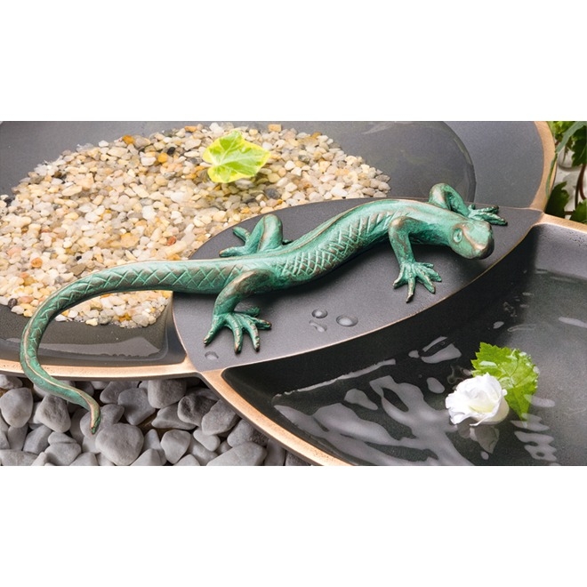 Edition Strassacker Bronzeskulptur "Vogeltränke mit Eidechse"