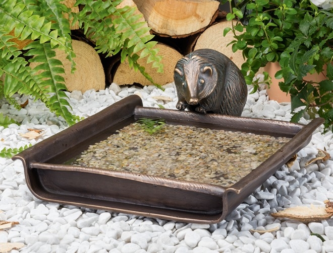 Edition Strassacker Bronzeskulptur "Vogeltränke mit Igel"