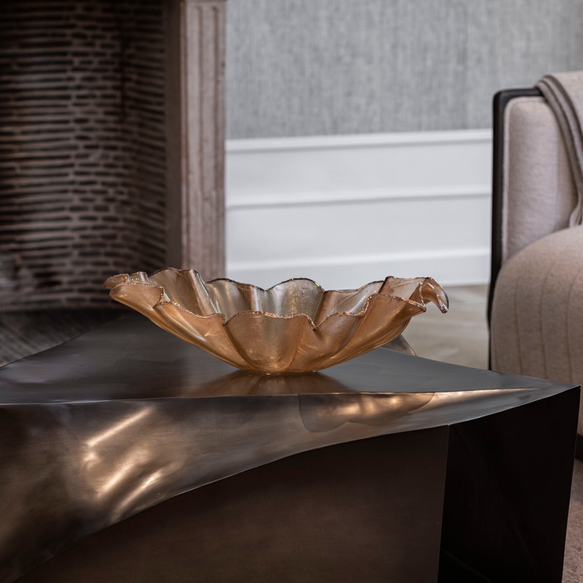 Atemberaubende Statement-Stücke wie diese Schale Anêmona aus Glas sind dazu bestimmt, im Mittelpunkt zu stehen und ihre ganze Schönheit zu entfalten. Entworfen von Regina Medeiros, einer brasilianischen Glaskünstlerin aus Belo Horizonte. Alle Designs von Regina werden von Hand gefertigt und mit Oxiden und Goldkomponenten eingefärbt.
