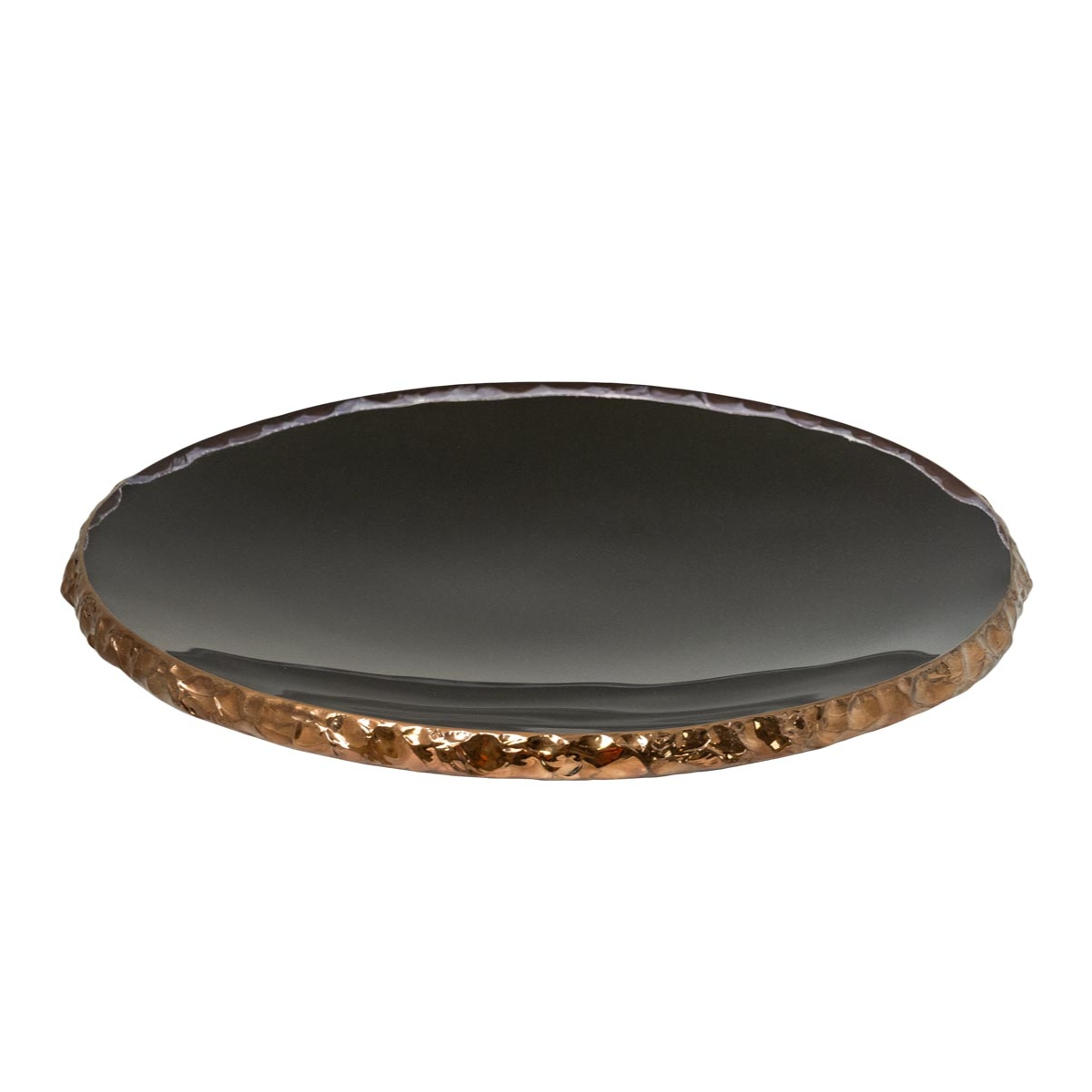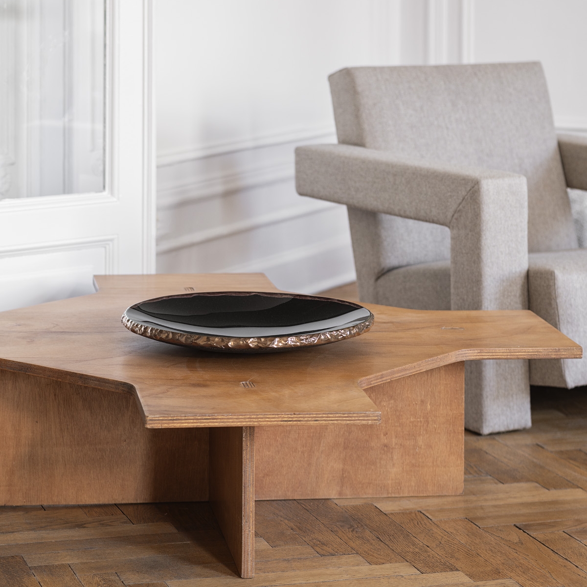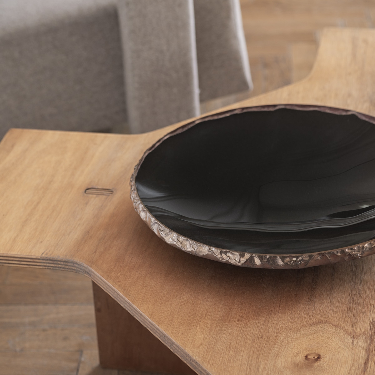 Centro Raso – eine elegante Glasschale, eingefärbt mit Glimmermineralien. Entworfen von Regina Medeiros, einer brasilianischen Glaskünstlerin aus Belo Horizonte. Alle Designs von Regina werden von Hand gefertigt und mit Oxiden und Goldkomponenten eingefärbt.