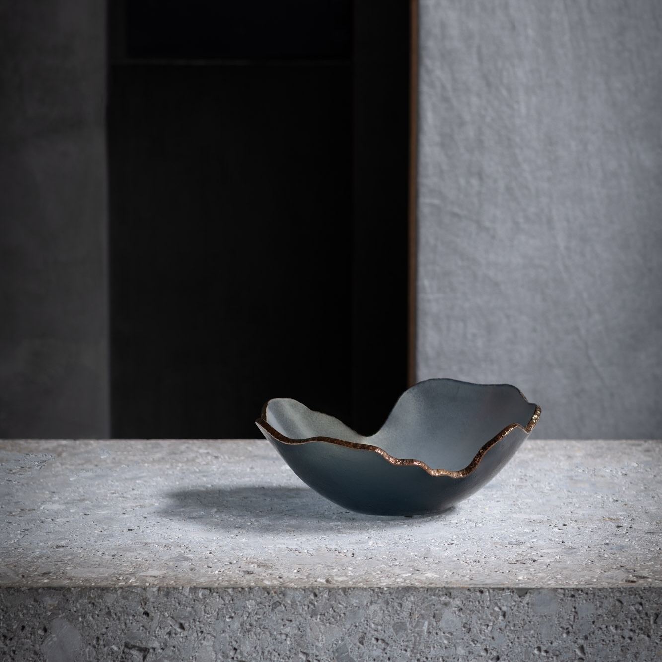 Mapa ist eine raffinierte Glasschale mit besonderer Form und mit farblichen Akzenten herausgearbeitet. Entworfen von Regina Medeiros, einer brasilianische Glaskünstlerin aus Belo Horizonte. Alle Designs von Regina werden von Hand gefertigt und mit Oxiden und Goldkomponenten eingefärbt.