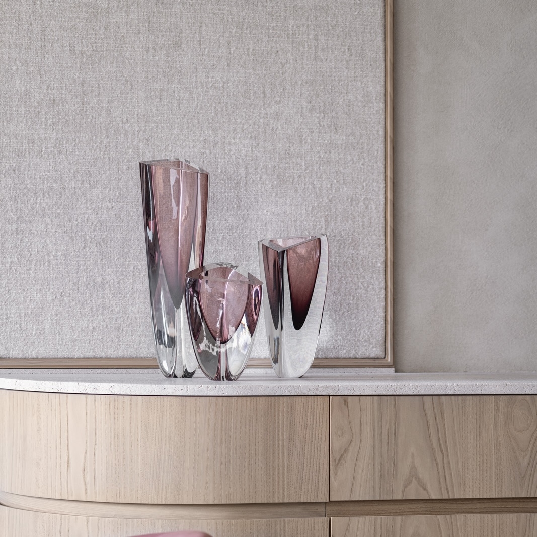 Die Triangle-Serie ist eine Kollektion eleganter mundgeblasener Glasobjekte. Die Vase besticht durch ihre dreieckige Form und macht sie zu einem außergewöhnlichen Dekorationsobjekt.