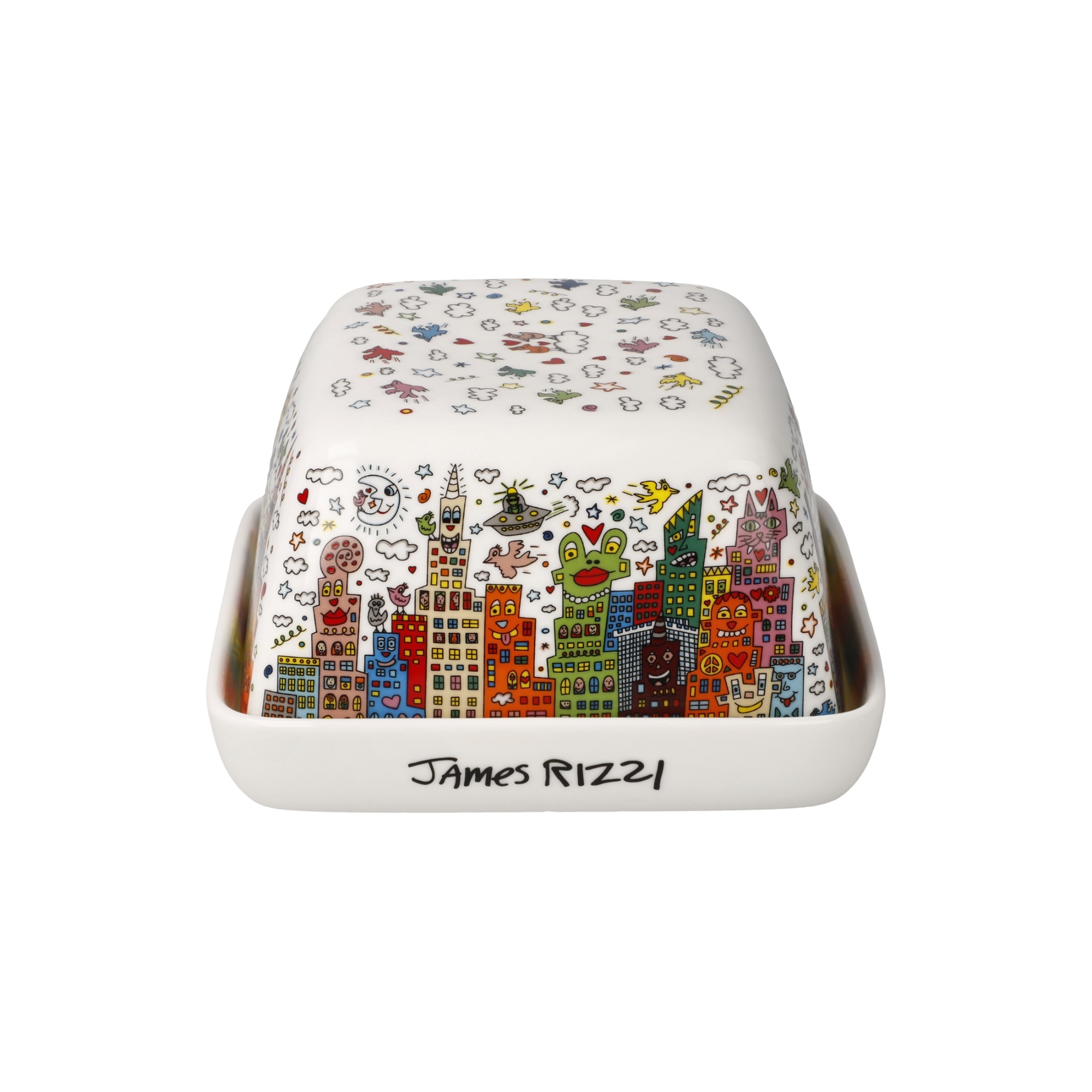 Diese Butterdose mit der New Yorker Skyline ist nicht nur funktional, sondern ein echtes Kunstwerk für den Alltag. Das fröhliche, lebendige Motiv zeigt Rizzis charakteristische Interpretation der weltbekannten Metropole und ihrem pulsierenden Leben.