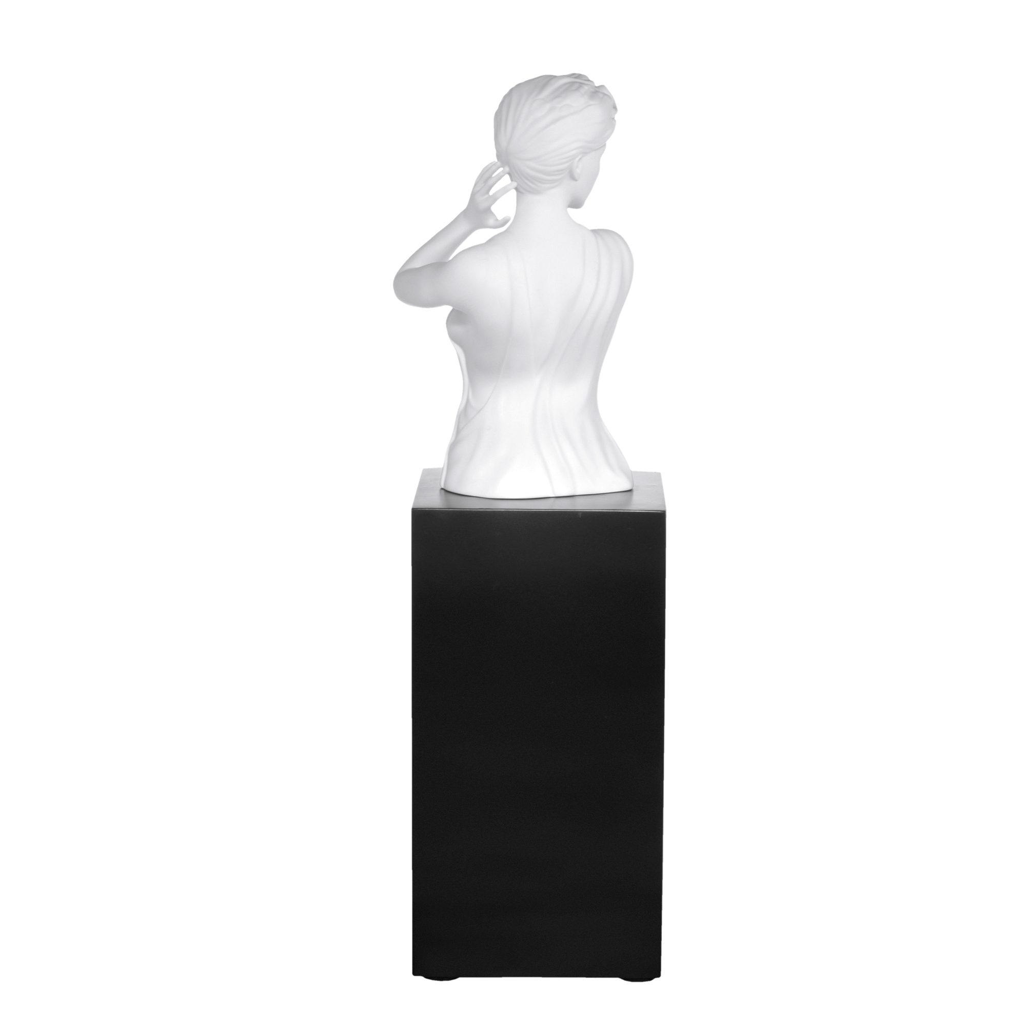 Inspiriert von Mythen und Legenden legt die tschechische Künstlerin Lana Frey ihren Fokus auf die menschliche Darstellung z.B. in Form von Porträtmalereien oder Skulpturen. So auch bei diesem Gemälde der griechischen Liebesgöttin. Frey hat bereits an Ausstellungen in den USA, Polen, Japan und Frankreich teilgenommen. Die Figur besteht aus hochwertigem Biskuit-Porzellan.