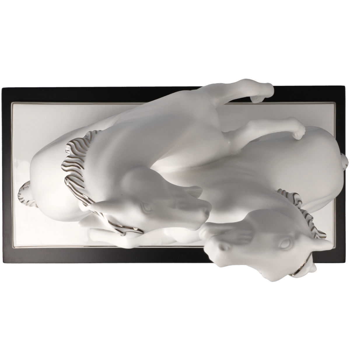 Pferdeskulptur "Artiste et Alegria" mit Platinauflage und MDF-Sockel.