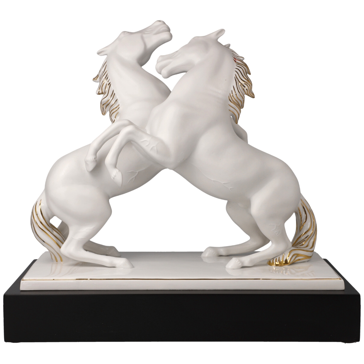 Pferdeskulptur "Artiste et Alegria" mit Echtgoldauflage und MDF-Sockel.