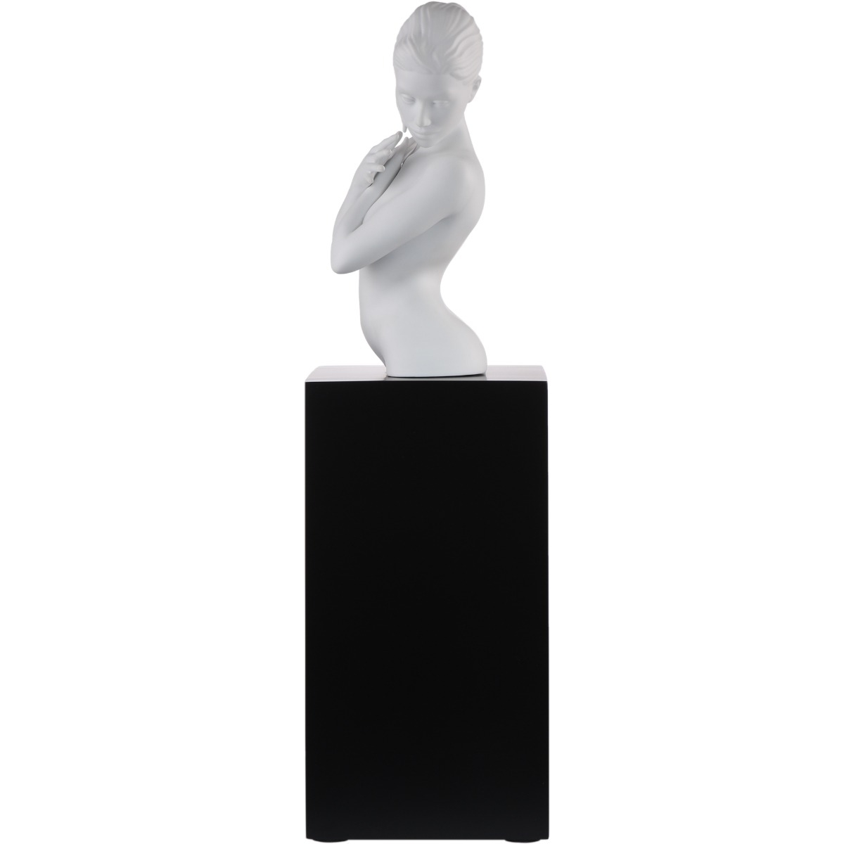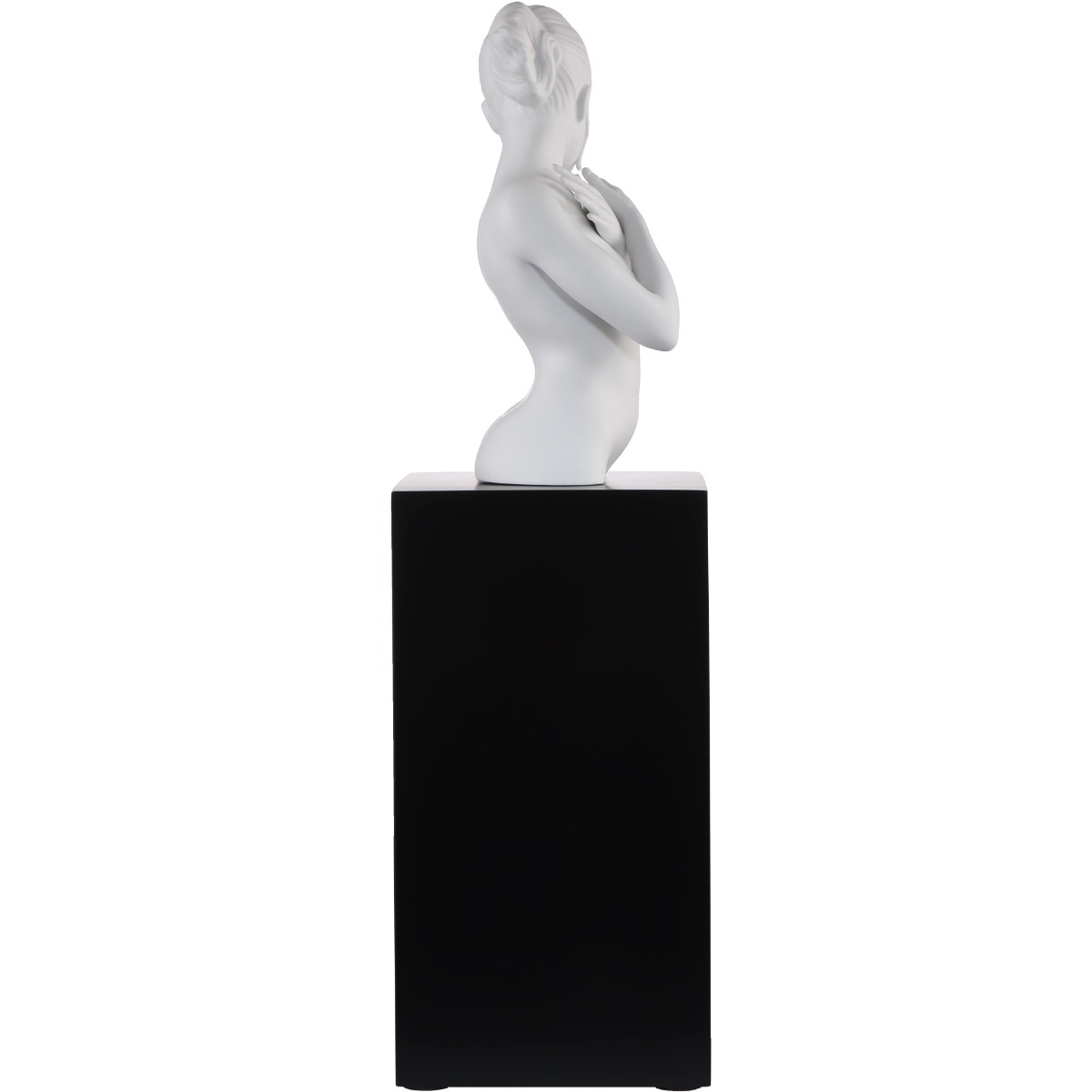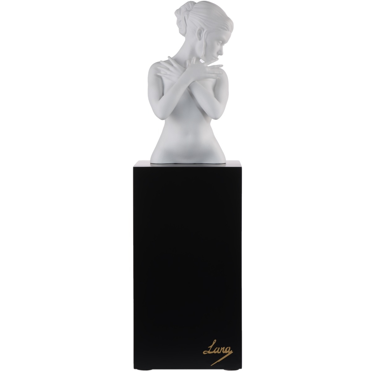 Inspiriert von Mythen und Legenden legt die tschechische Künstlerin Lana Frey ihren Fokus auf die menschliche Darstellung z.B. in Form von Porträtmalereien oder Skulpturen. So auch bei dieser Figur, die den Oberkörper einer unbekleideten Frau auf einem Holzsockel zeigt. Frey hat bereits an Ausstellungen in den USA, Polen, Japan und Frankreich teilgenommen. Die Figur besteht aus hochwertigem Biskuit-Porzellan.