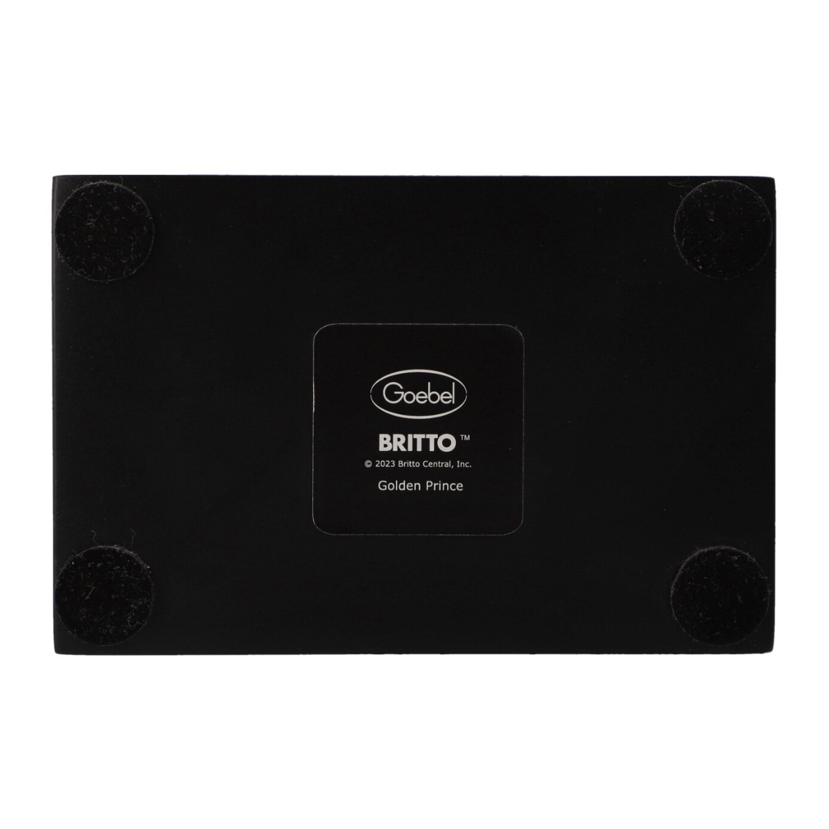 In erster Linie sind Brittos Objekte den Themen Liebe, Freundschaft, Hoffnung und Freude gewidmet. Die Figur "Golden Prince" auf schwarzem Holzpostament erscheint durch ihr dezentes Design mit echter Goldapplikation besonders edel und fügt sich perfekt in jedes moderne Wohnambiente ein.