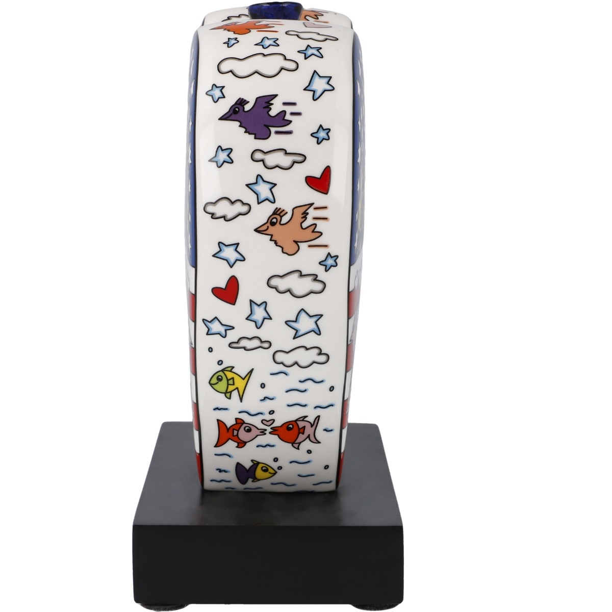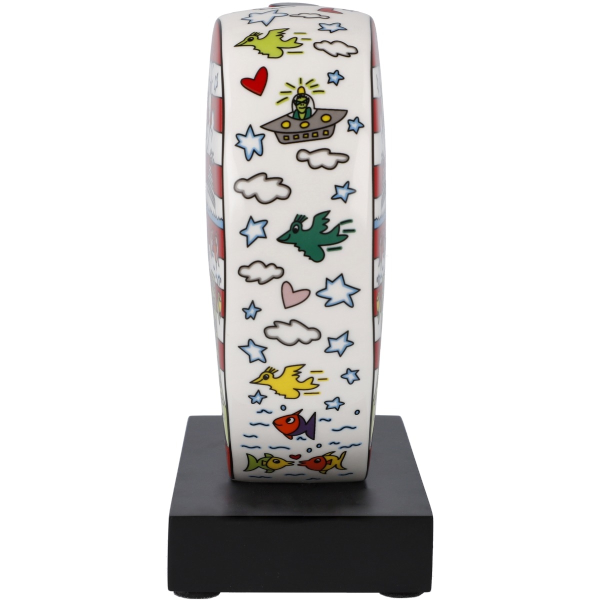 Die hochwertige Porzellanfigur auf einem schwarzen Holzsockel ist ein kleines Highlight der Pop-Art und ein echter Hingucker.