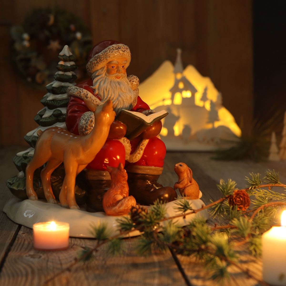 Tief im verschneiten Winterwald zwischen den Bäumen hört man leise eine Stimme sprechen. Geht man etwas näher heran, sieht man einen stattlichen Mann im roten Gewand mit einem dicken Buch. Es ist Märchenstunde im Wald und viele Tiere versammeln sich und hören aufmerksam zu. Die Figur ist streng limitiert und ist durch die imposante Größe eine Besonderheit.
