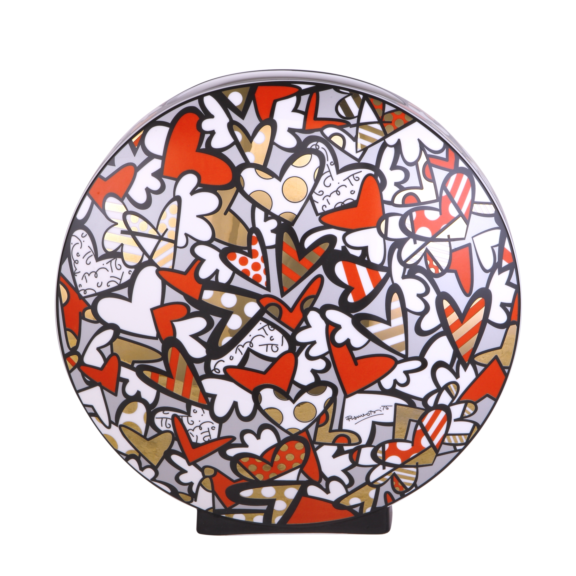 Ausgewählte Werke von Pop-Art Künstler Romero Britto zieren hochwertige Porzellan- und Glasartikel. Die kleinen Kunstwerke werden in aufwendiger und sorgfältiger Handarbeit hergestellt.