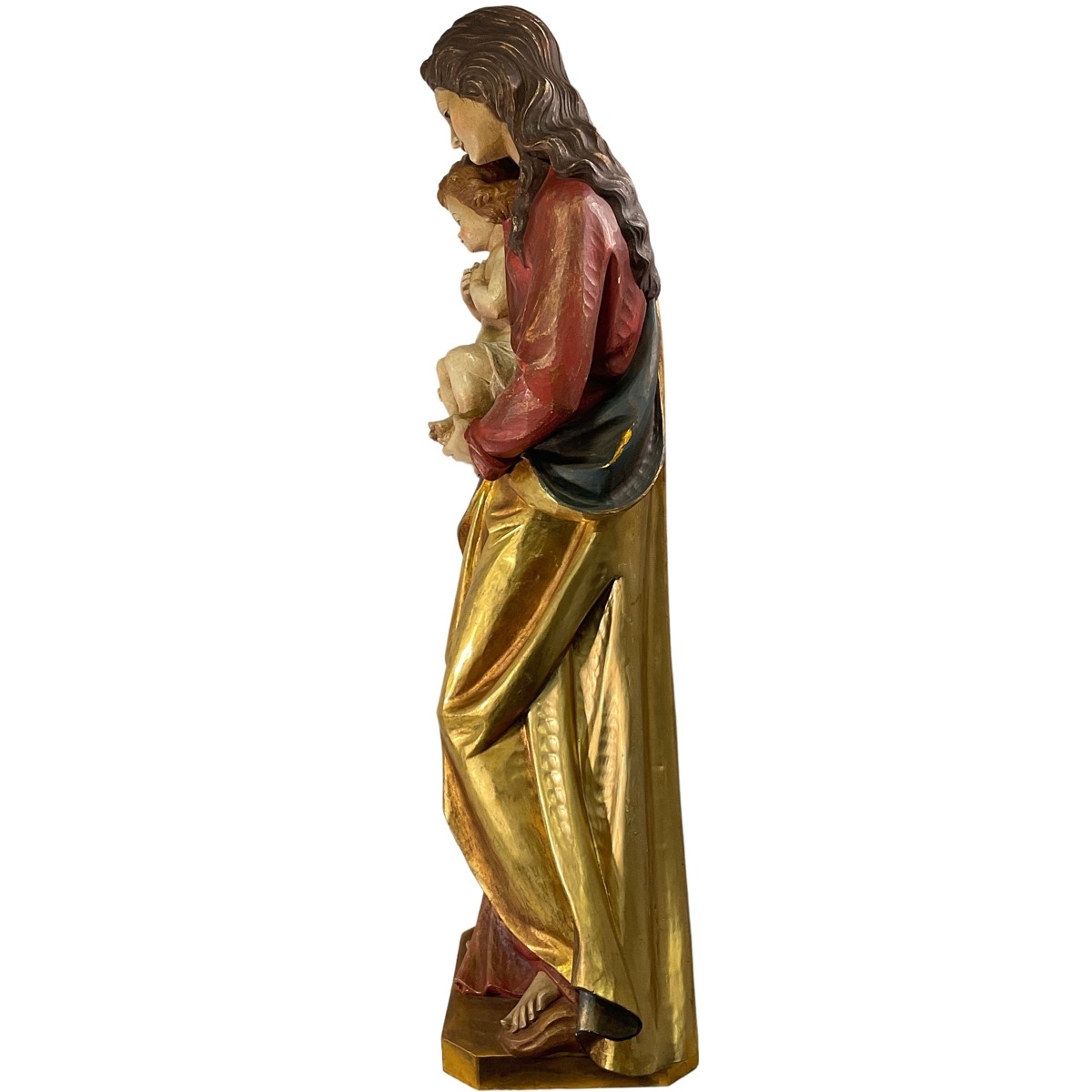 Bereichern Sie Ihr Zuhause mit dieser wertvoll gearbeiteten Holzskulptur der Mutter Maria mit dem Jesuskind.