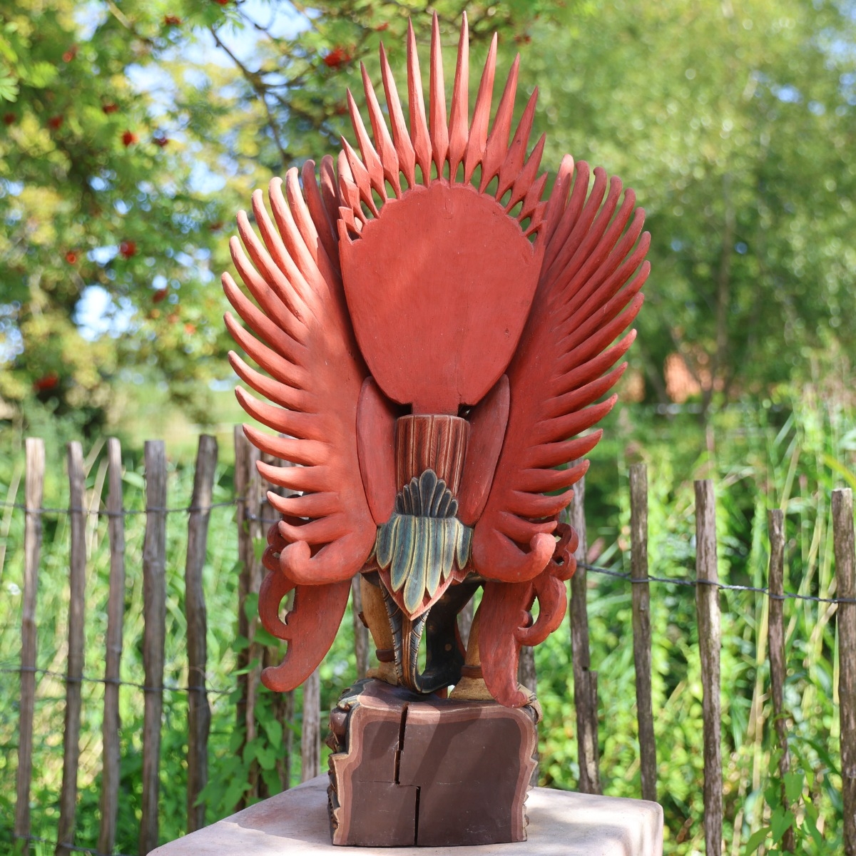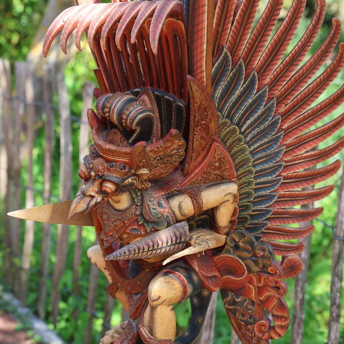 Garuda ist ein halb menschliches und halb adlergestaltiges Wesen, das in der indischen Mythologie hauptsächlich als Reittier des Vishnu bekannt ist. In weiteren asiatischen Kulturen vertritt er gleichzeitig auch eine Bedeutung als Götterbote, der den Menschen die Nachrichten und Anweisungen der Götter bringt.