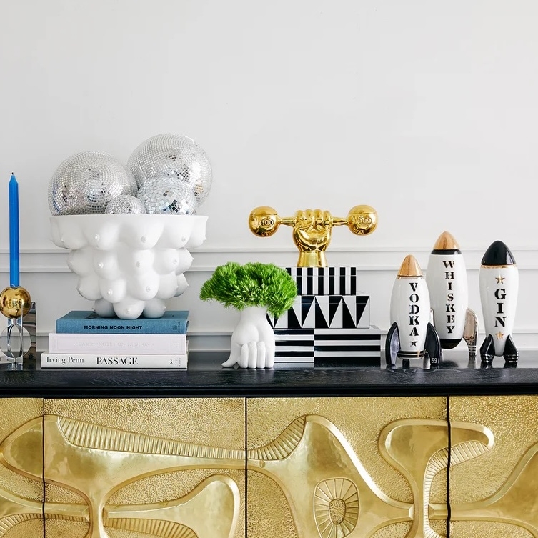 Jonathan Adler ist ein US-amerikanischer Designer, Töpfer und Autor, der für seine unverwechselbare Mischung aus modernem Design, Kunsthandwerk und augenzwinkerndem Luxus bekannt ist. Seit der Eröffnung seines ersten Geschäfts im Jahr 1998 in New York hat sich seine Marke international etabliert und steht heute für hochwertige Wohnaccessoires, Möbel und Dekorationsobjekte. Charakteristisch für Jonathan Adler sind kräftige Farben, glamouröse Details wie Goldakzente, verspielte Muster und ein Hauch von Surrealismus. Besonders berühmt ist seine Muse-Kollektion, bei der klassische Formen mit Gesichtern, Lippen oder anderen Körperdetails verziert werden – inspiriert von den Musen großer Künstler.