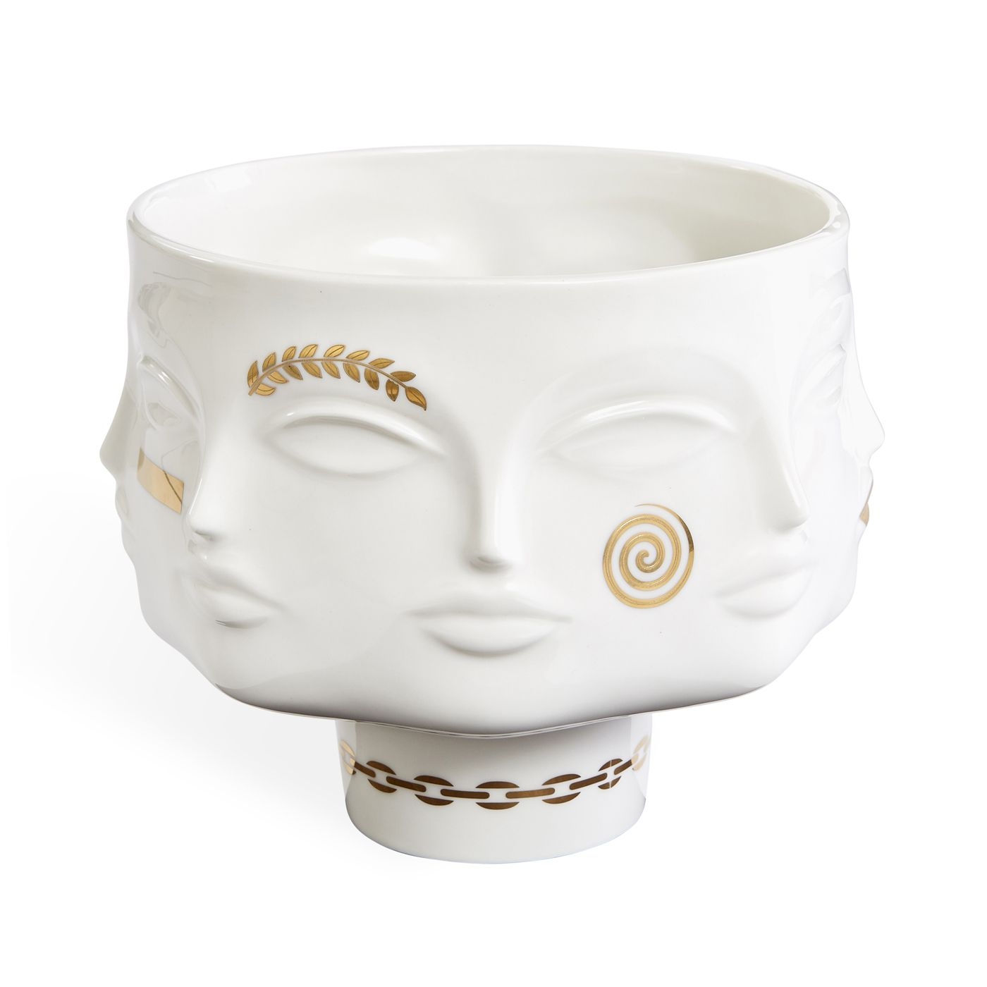 Wir haben unserer ikonischen Muse-Kollektion ein Facelifting verpasst. Eigentlich eher ein De-Facelifting. Subversive Zeichen und Symbole, ausgeführt in funkelndem Gold, schmücken die glänzenden, hochgebrannten Porzellanobjekte – unsere Favoriten mit Glamourfaktor 11. Ein echter Hingucker, der aus jedem Winkel eine gute Figur macht. Inspiriert von Dora Maar, der französischen Fotografin, Dichterin und Malerin, die auch als Geliebte und Muse von Pablo Picasso bekannt ist. Jonathan modelliert und dreht die Formen für unsere Muse-Keramik und ersetzt dann die typischen geometrischen Reliefmuster durch Körperteile – Gesichter, Brüste, Lippen – um einen surrealistischen Stil zu schaffen. Die Stücke sind von den Musen unserer Lieblingskünstler inspiriert.