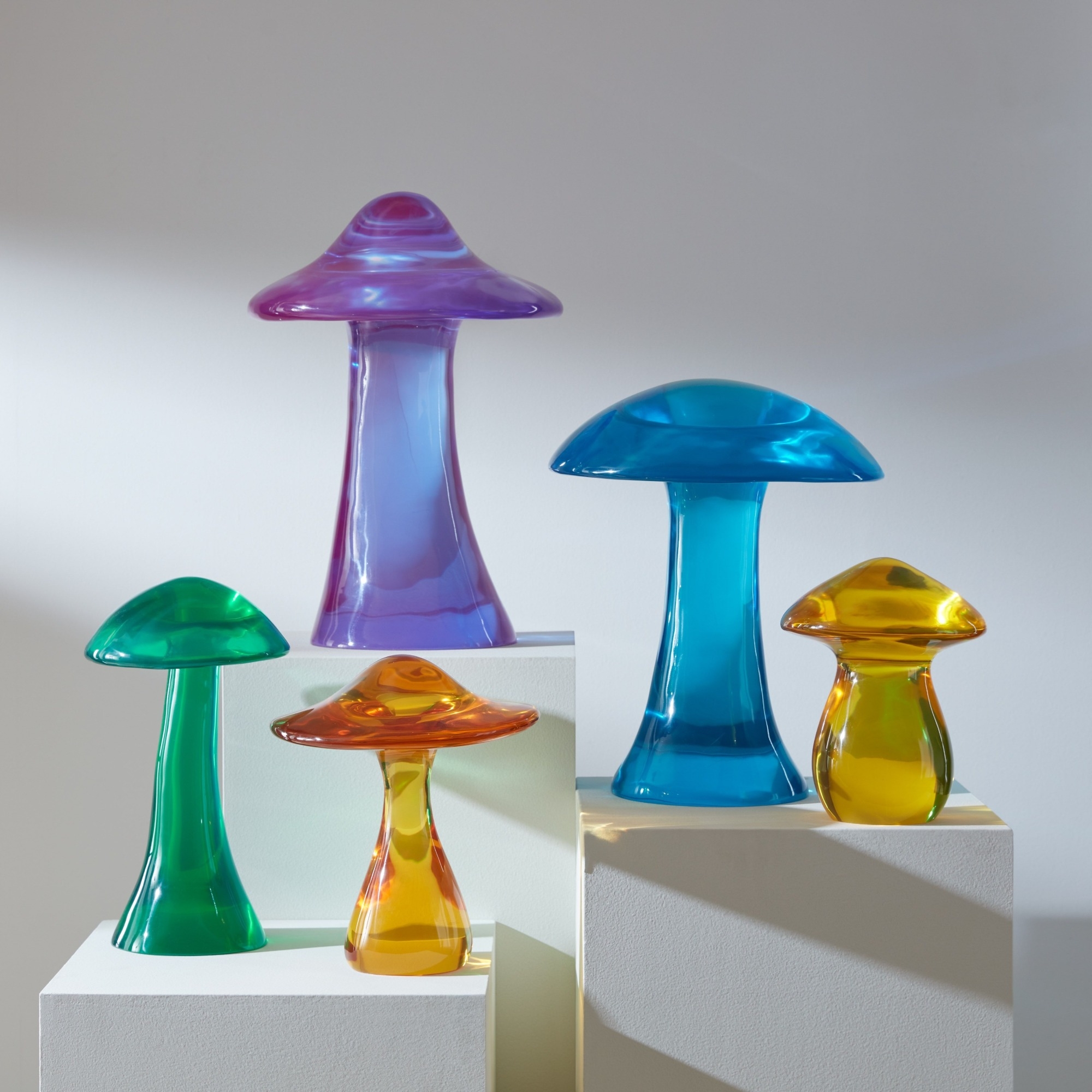 Unsere Pilzskulpturen werden aus massivem Acryl in ausdrucksstarken, kräftigen Farben gefertigt. In unserem Töpferstudio in Soho formen wir jedes Modell von Hand, um jeder Skulptur eine organische, lebendige Form zu verleihen. Ein einzelner Pilz ist bereits ein Highlight in jeder Dekoration, oder erwerben Sie alle fünf, um ein beeindruckendes Pop-Art-Statement zu setzen.