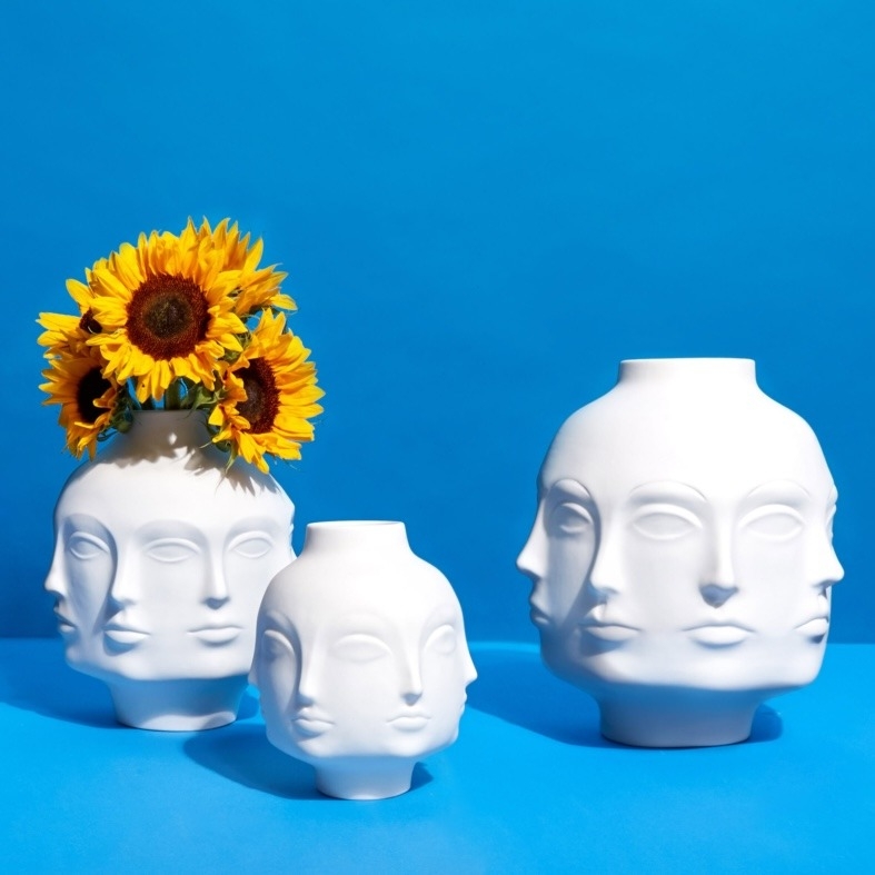 Unsere Dora Maar Vase macht aus jedem Blickwinkel eine gute Figur; ihr unglasiertes Finish betont die makellosen Züge der Muse in wunderbar feinen Details. Inspiriert von Dora Maar, der französischen Fotografin, Dichterin und Malerin, die auch als Geliebte und Muse von Pablo Picasso bekannt ist. Jonathan modelliert und dreht die Formen für unsere Muse-Keramik und ersetzt dann die typischen geometrischen Reliefmuster durch Körperteile – Gesichter, Brüste, Lippen – um einen surrealistischen Stil zu schaffen. Die Stücke sind von den Musen unserer Lieblingskünstler inspiriert.
