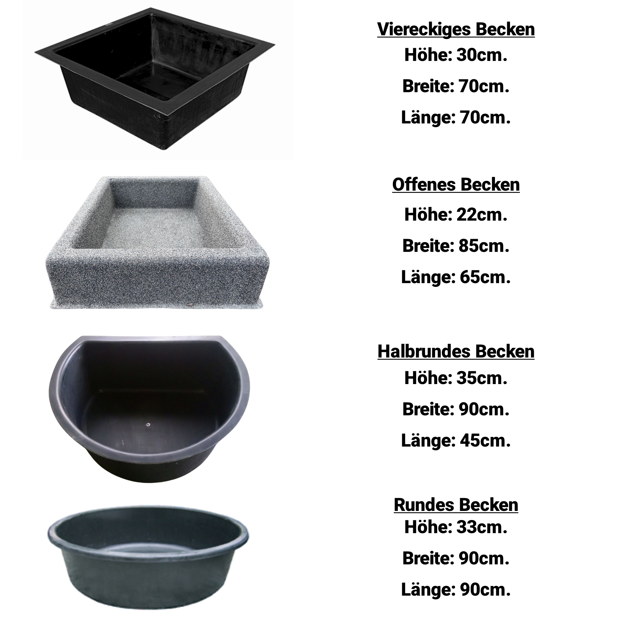 Aber auch ohne eine bestehende Wasserfläche ist der Aufbau eines Wasserspiels unkompliziert – mit unseren Komplettsets brauchen Sie nur noch Wasser und Strom.