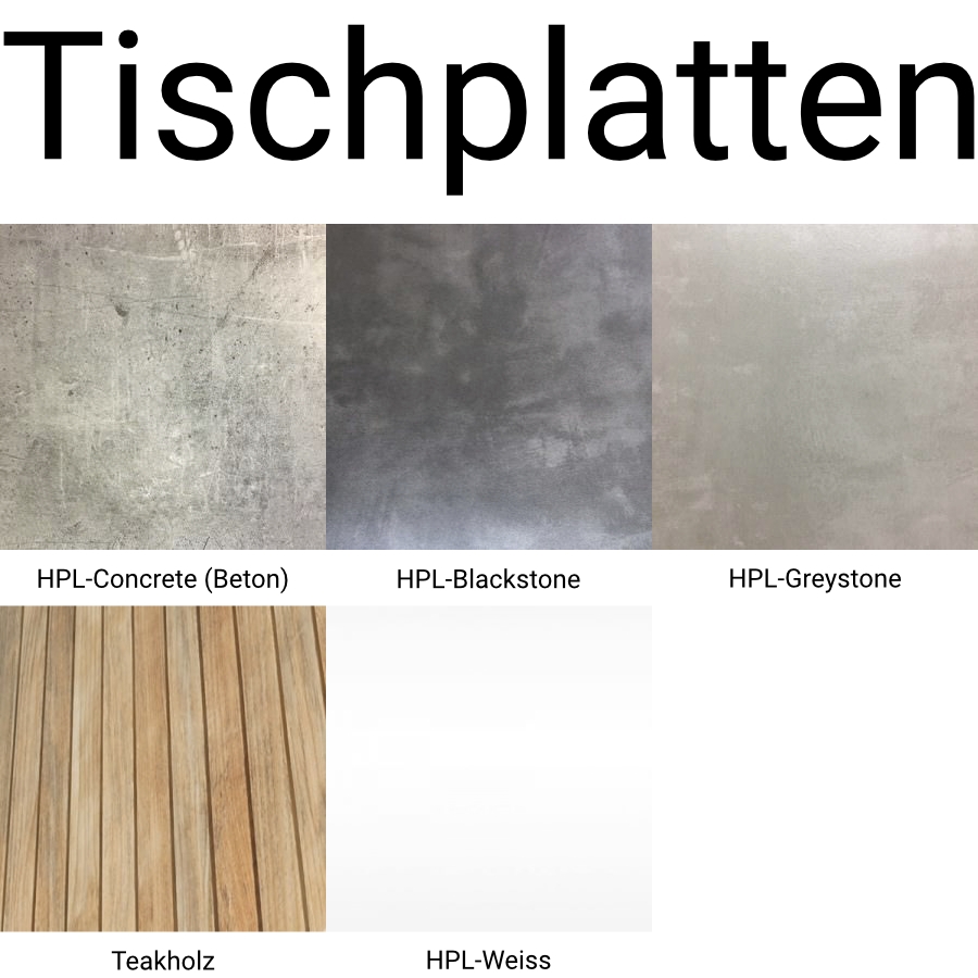 | Material | Edelstahl + HPL |