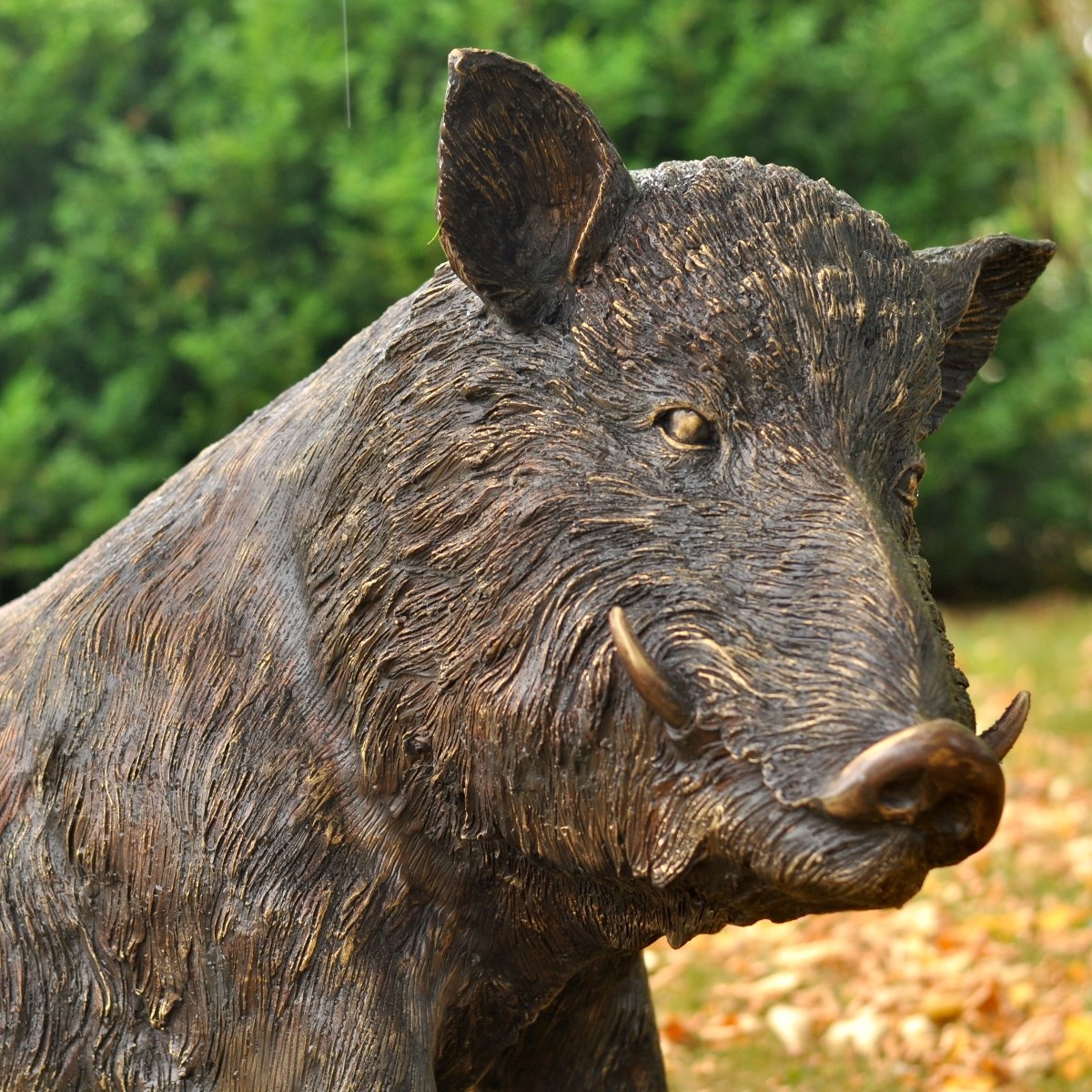 Bronzefigur "Lebensgroßes Wildschwein - sitzender Keiler"