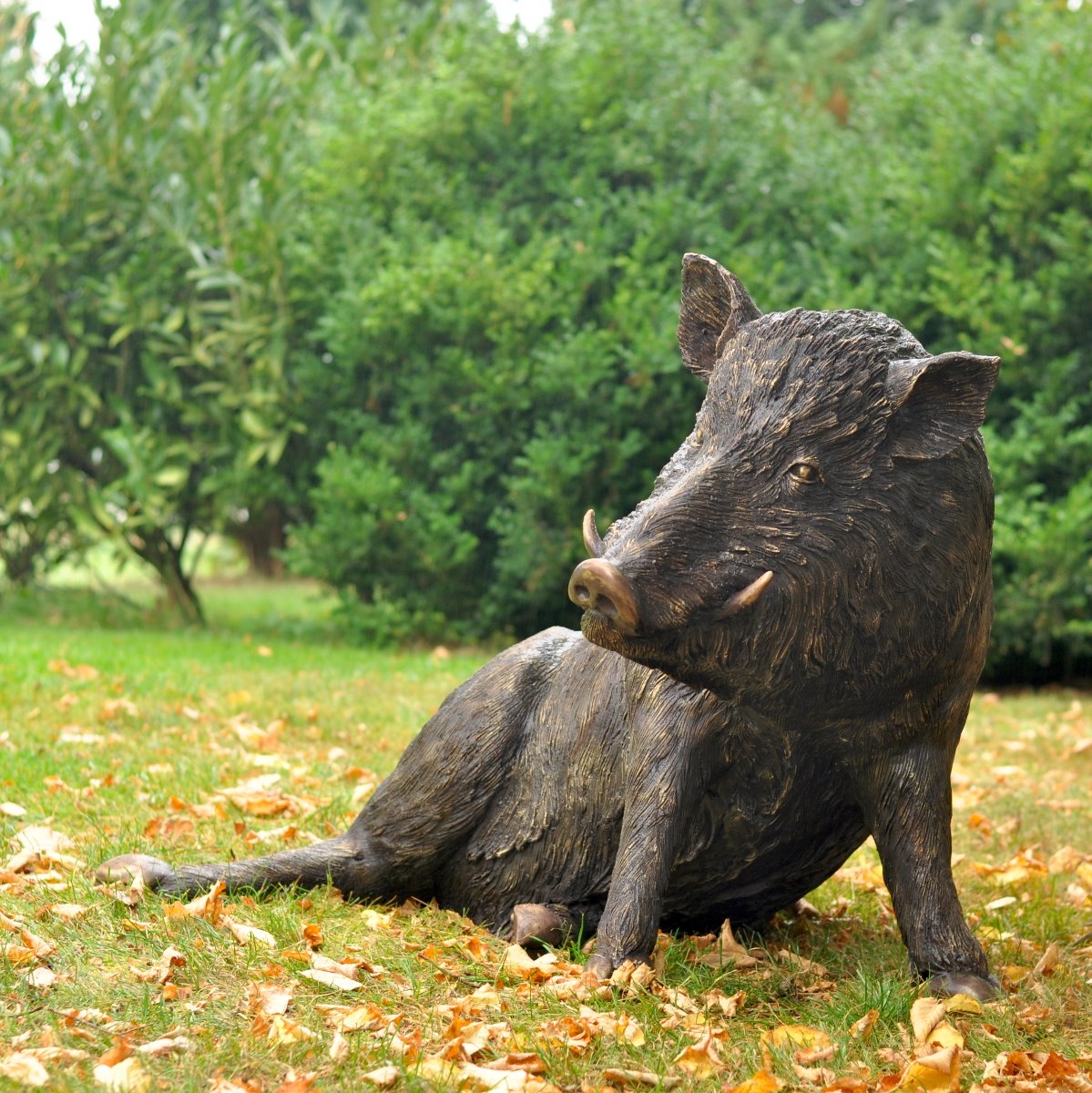 Ergänzen Sie Ihren natürlichen Garten mit dieser Rottenecker Bronzefigur "Lebensgroßes Wildschwein - sitzender Keiler".