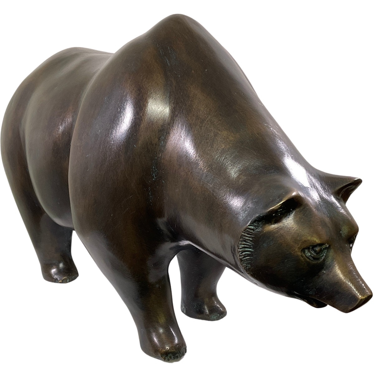 An der Börse stehen Bulle und Bär für das Auf und Ab des Marktes und sind das Symbol für den ganzen Finanzsektor. Die hochwertige Bronzeskulptur Bär besticht durch die besonders dynamische Darstellung. Die Bronzefigur ist sehr detailliert ausgearbeitet und die aufwändige Patina rundet dieses Kunstwerk perfekt ab. Die Börse unterscheidet zwischen Bären- und Bullenmarkt. Der Begriff Bärenmarkt steht an der Börse für anhaltend sinkende Kurse. Der Bär ist pessimistisch er macht sein Geld durch Skepsis und Unglauben, spekuliert auf sinkende Kurse oder kauft auf Verkaufsoptionen. Ein Bärenmarkt geht bergab. Alle unsere Bronzeskulpturen werden nach alter Tradition von Hand ausgeformt, in Bronze gegossen, weiter bearbeitet und zum Schluss mit einer feinen Patina versehen.