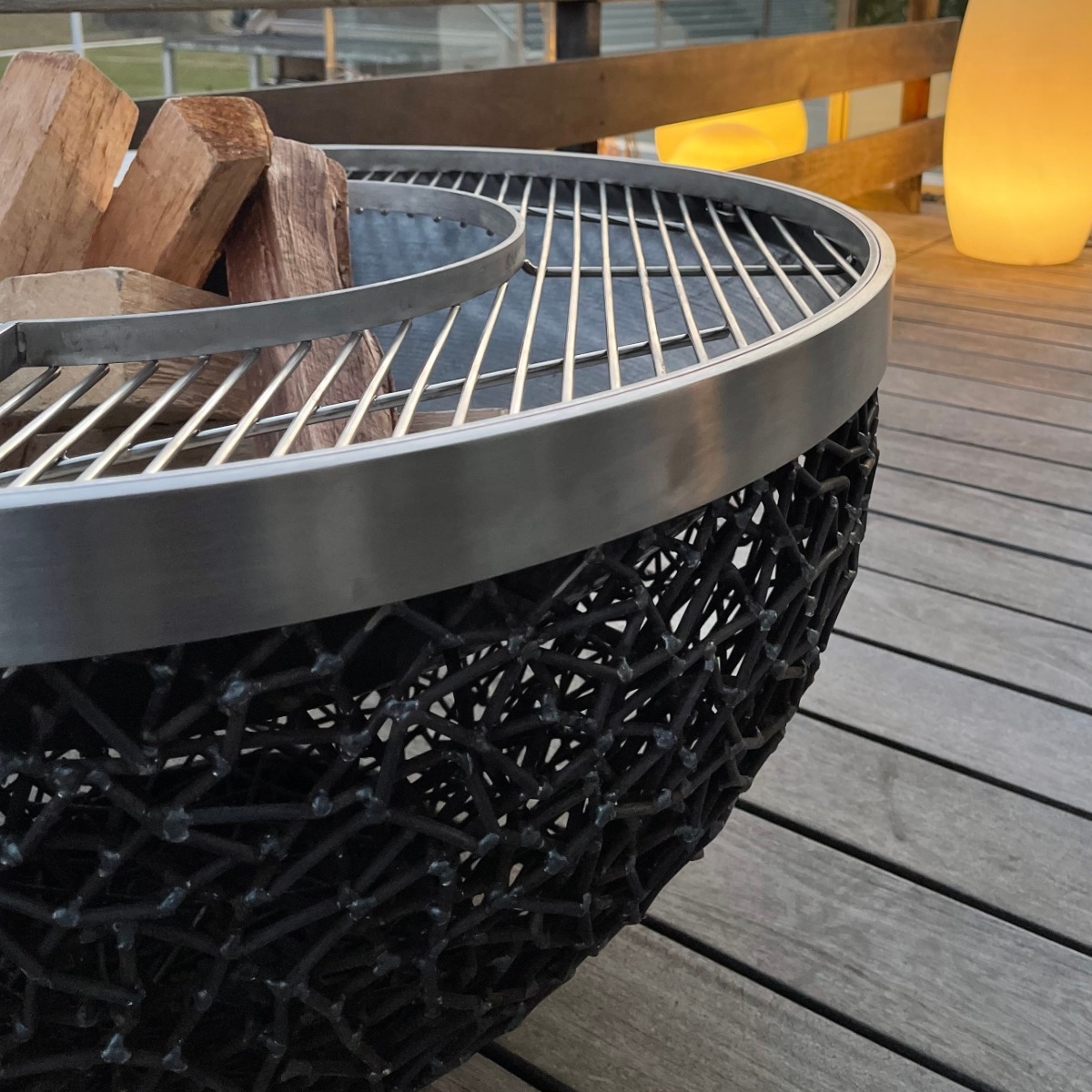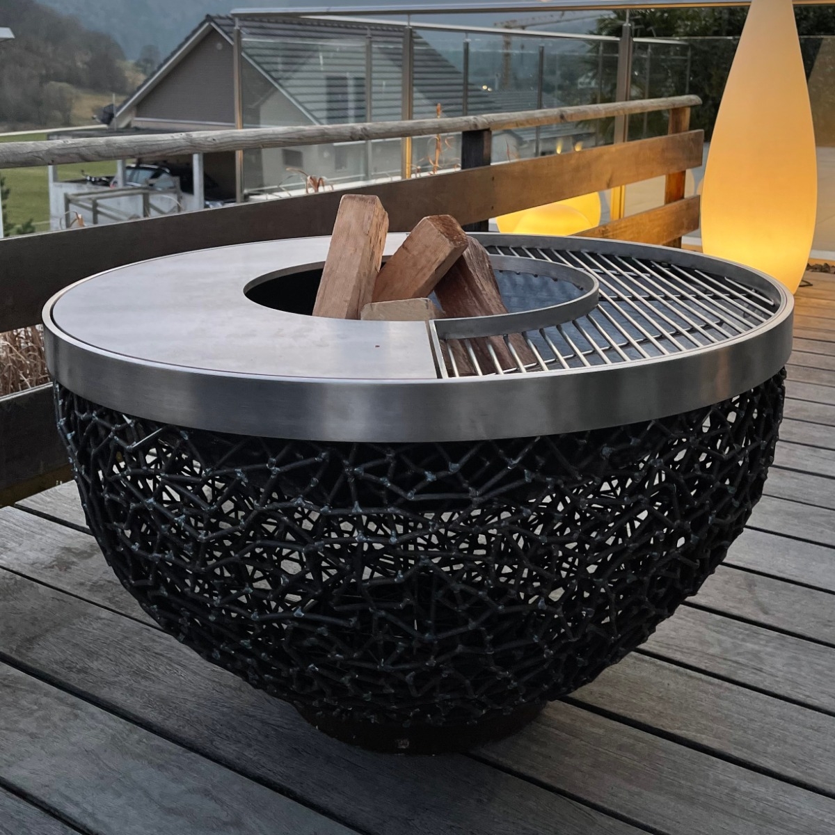 rufer.swiss "drato Sfera" Feuerschalengrill mit u-rost und u-teppanyaki