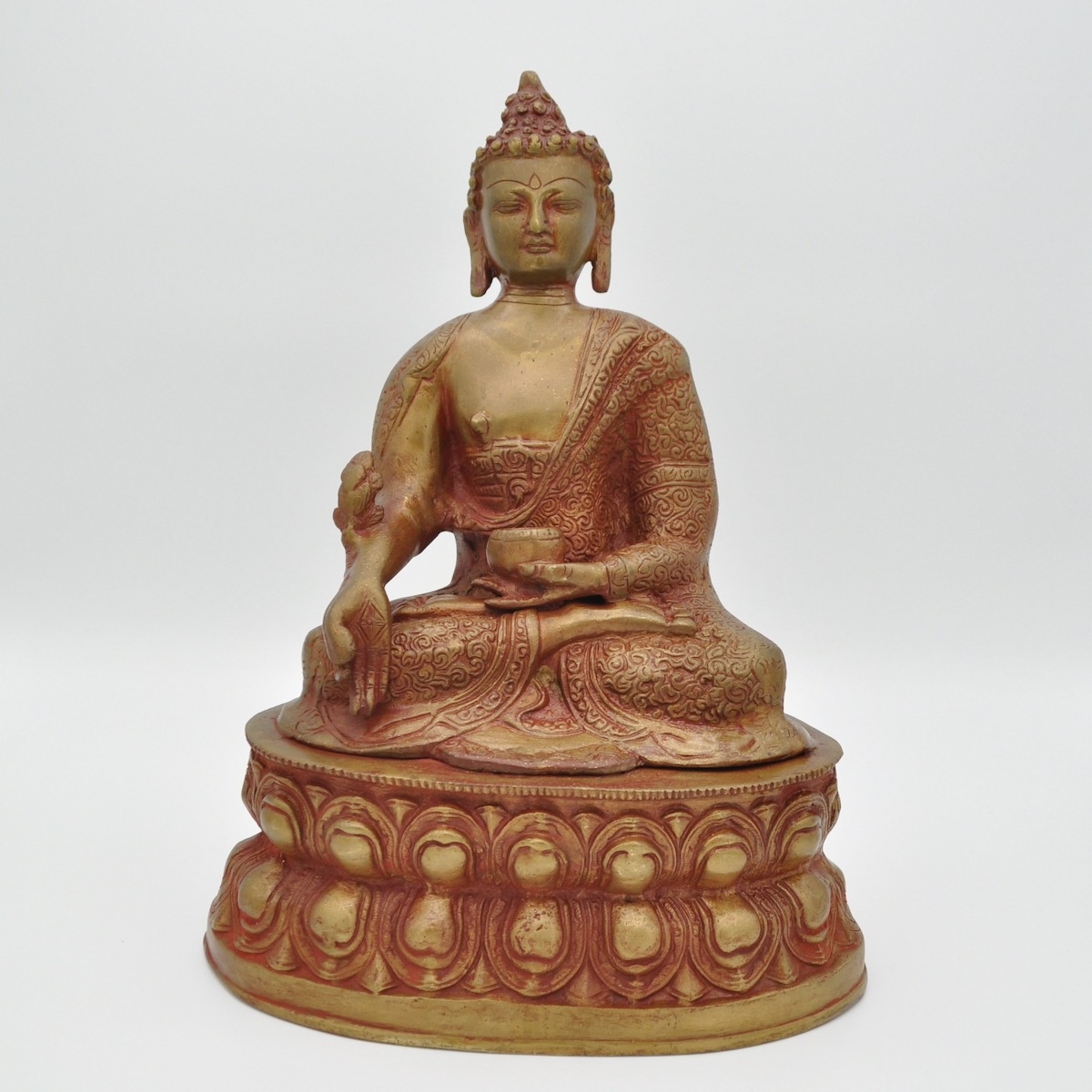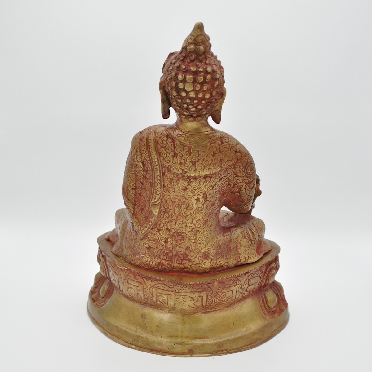 Lassen Sie mit Sitzender Buddha aus Messing mit roter Patina asiatische Atmosphäre in Ihr Zuhause einziehen.