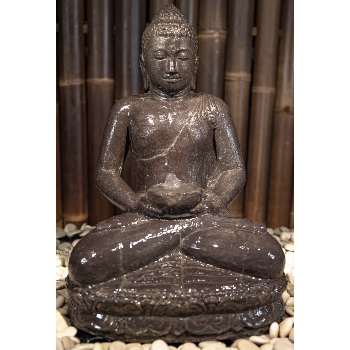 Sitzender Steinguss Buddha mit Gefäß als Wasserspiel - Komplettset, 50cm