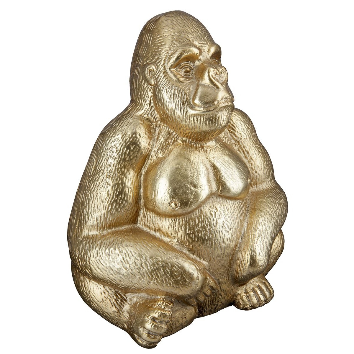 Dank seiner handlichen Größe lässt sich dieser goldfarbene Gorilla aus Aluminium überall einfach platzieren und fällt dennoch dem Betrachter ins Auge.