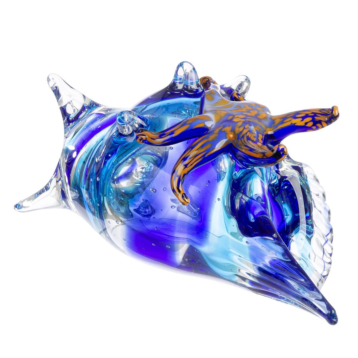 Skulptur "Muschel mit Seestern" in blau aus Glas