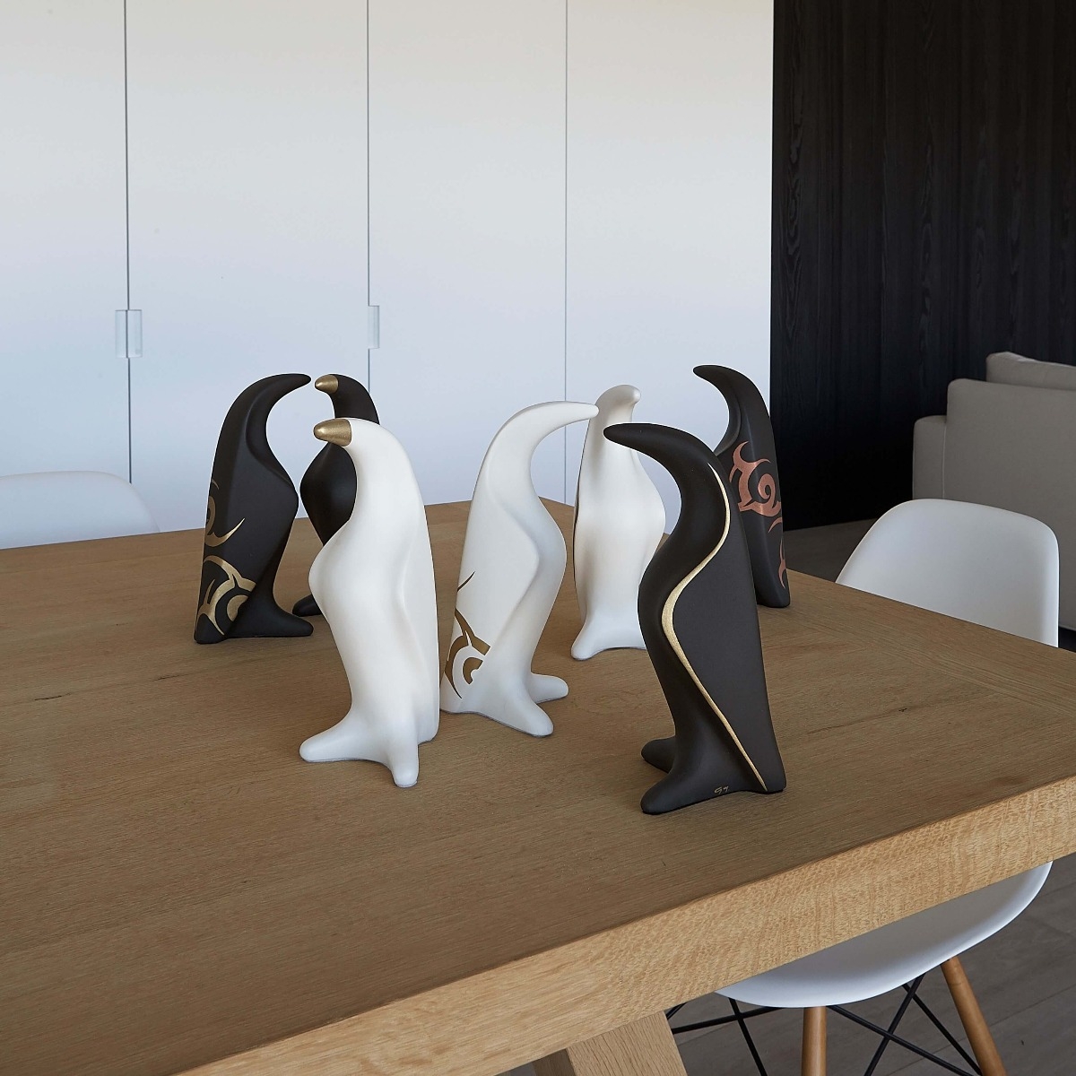 Diese große Version der Skulptur misst Höhe: 44cm. Breite: 20cm. Tiefe: 25cm. "Pinkwin" ist eine handgearbeitete Keramik Skulptur, die im Studio von Frau Selma Calheira in Brasilien hergestellt wird. Alle Pinguin Figuren werden aus rein natürlichen Komponenten, wie Kalk und Farbpigmenten gearbeitet. Es können leichte Farbveränderungen auftreten, die den einzigartigen Charme handgefertigter Produkte ausmachen. Die Keramikarbeiten sind für die Indoor-Dekoration gedacht und die Fußssohlen sind mit Filzgleitern versehen. Das Studio ist bekannt für die Förderung und Ausbildung lokaler Kunsthandwerker und "Pinkwin" ist ein schönes Beispiel für interkontinentale Zusammenarbeit von Künstlern. Bereichern Sie Ihren Wohnbereich mit diese außergewöhnlichen Skulptur "Pinkwin large" von Guy Buseyne. Da es sich bei den Pinguin-Skulpturen um Handarbeit handelt können Abmessungen und die Kopfhaltung minimal variieren.