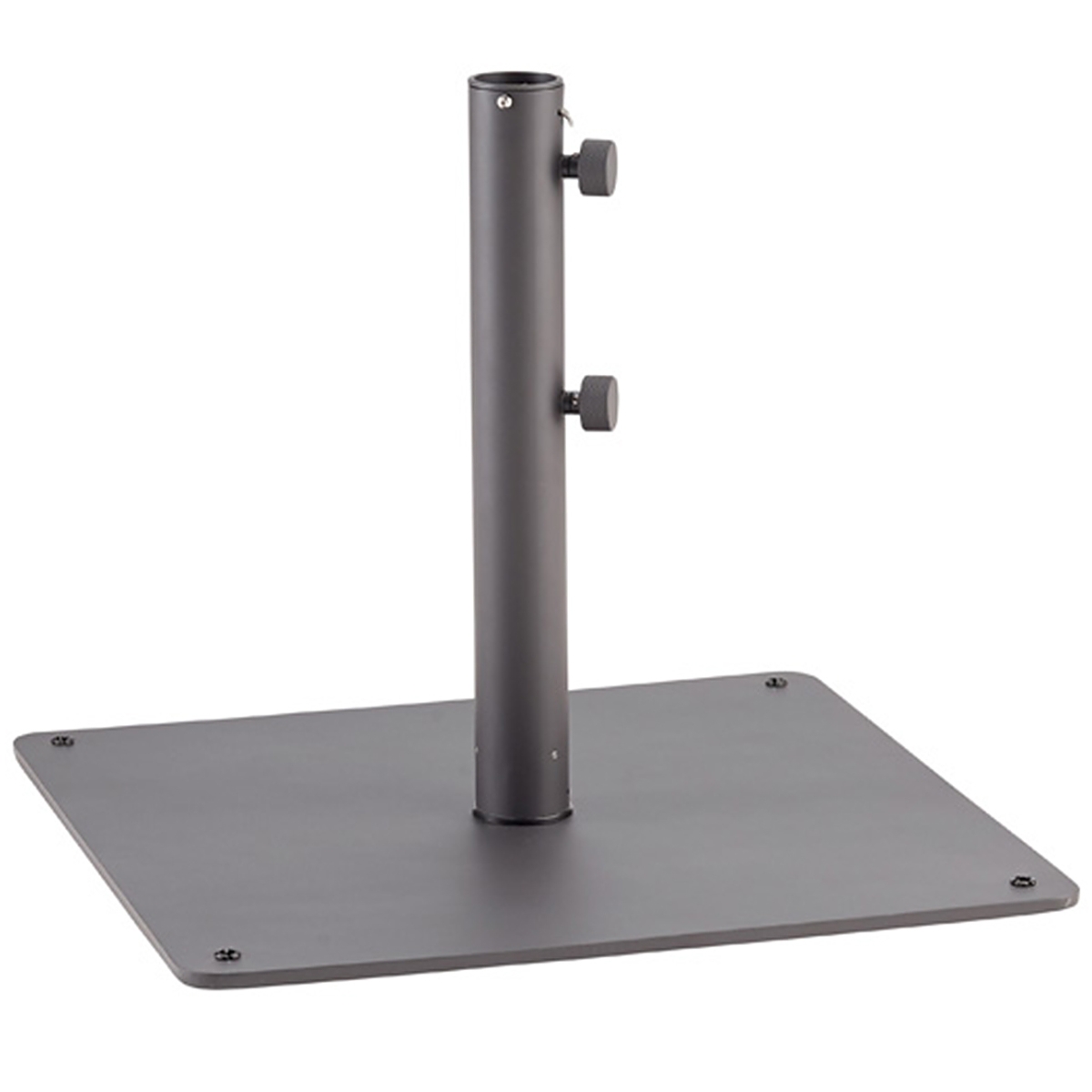 Der Hersteller solpuri empfiehlt, den Sonnenschirmständer aufgrund des evtl. zu geringen Gewichts mit Beschwerungsplatte zu kaufen.