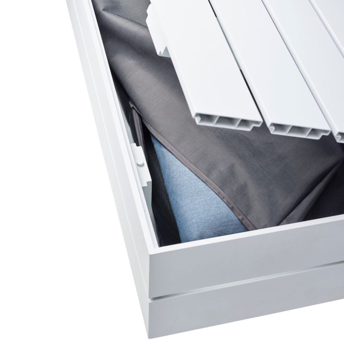 Die Sitzmodule sind mit einer Höhenverstellung ausgestattet und können so nach Wunsch auf Lounge- oder Dining-Höhe montiert werden, zudem bieten sie einen praktischen Stauraum für die Polster. Die samtig, matte Oberfläche, die dem Aluminium-Möbelstück seine edle Optik und angenehme Haptik verleiht, ist unverwechselbar.