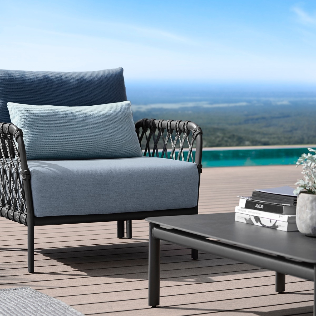 Die CARO Lounge Tische wurden von den Designern Hoffmann & Kahleyss entworfen. Egal ob am Pool oder auf der Terrasse, die von einer gerundeten Silhouette und einem filigranen, weitmaschigen Geflecht charakterisierte CARO Lounge bietet ein luxuriöses Sitzerlebnis für entspannte Tage oder gemütliche Sommernächte und lässt in puncto Wohlfühlfaktor und Komfort keine Wünsche offen.