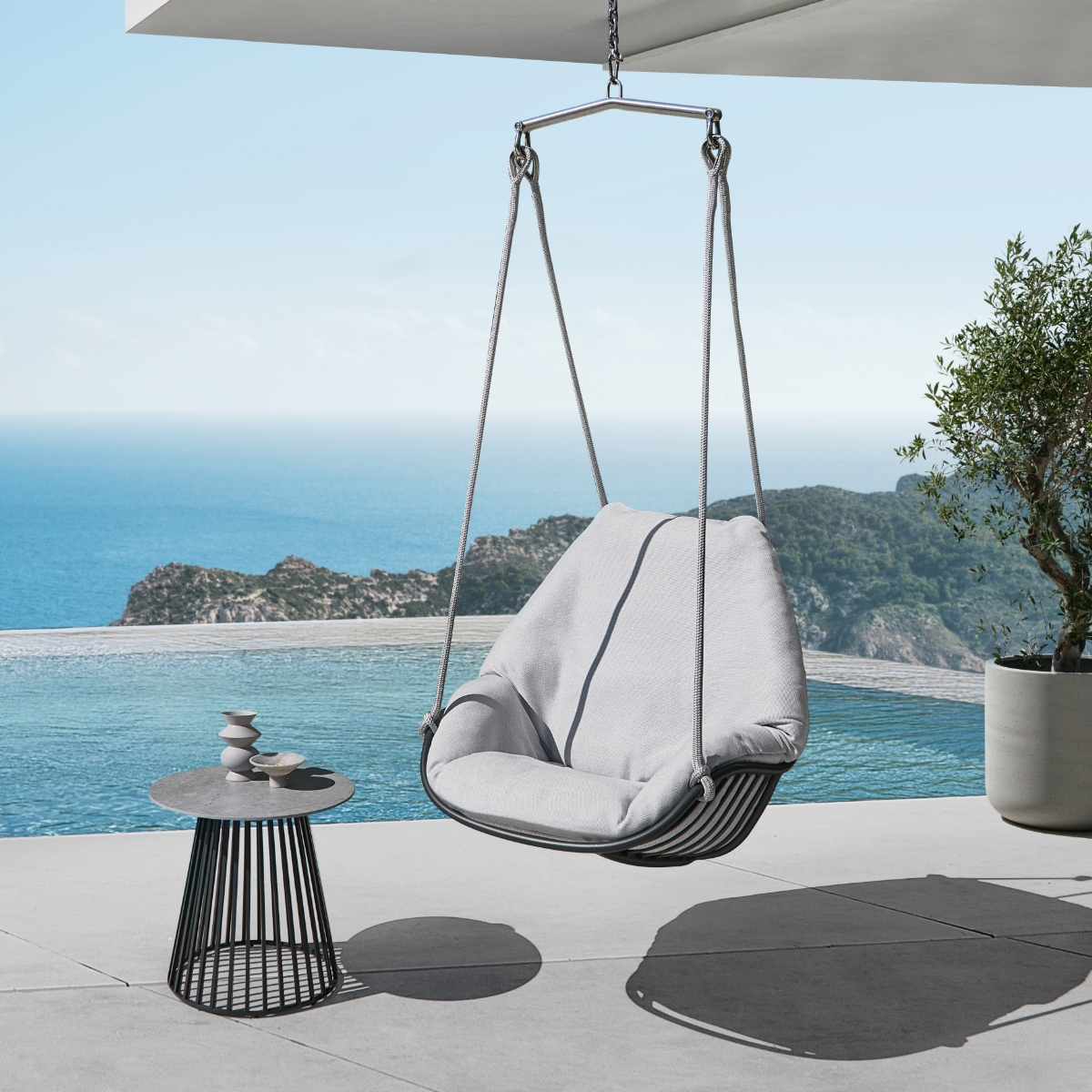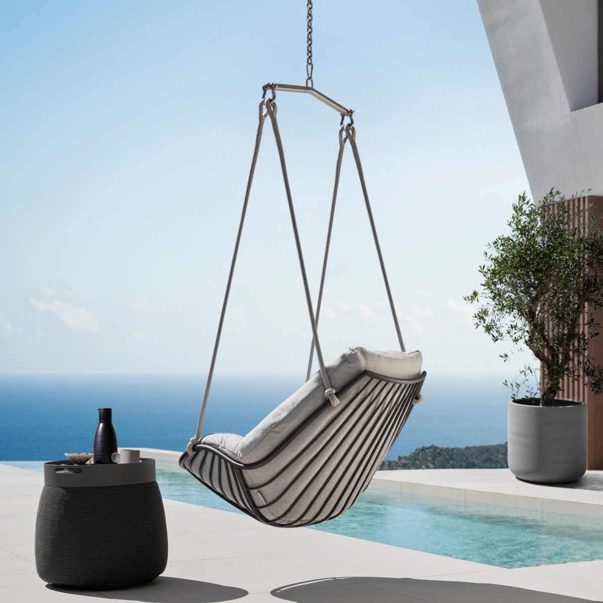 Die Chill Hängeschaukel wurde im Jahr 2023 von dem Designer Klaus Nolting entworfen. Das besondere Kufen-Gestell verleiht dem CHILL eine einzigartige Silhouette. Dazu vermittelt die minimalistische Sitzschale durch ihre Aluminiumstreben Modernität und die Liebe zu Design.