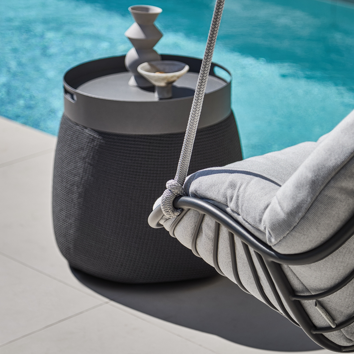 Die solpuri Aluminium-Kollektion wird aus hochwertigen Aluminium-Legierungen gefertigt, die sich durch eine große Festigkeit und Härte auszeichnen. Für die farbliche Beschichtung der Oberflächen wird ein Pulver verwendet, mit dem ein Höchstmaß an Schlag- und Kratzresistenz erzielt wird. Unverwechselbar ist die samtig, matte Oberfläche, die dem Aluminium-Möbel seine edle Optik und angenehme Haptik verleiht.