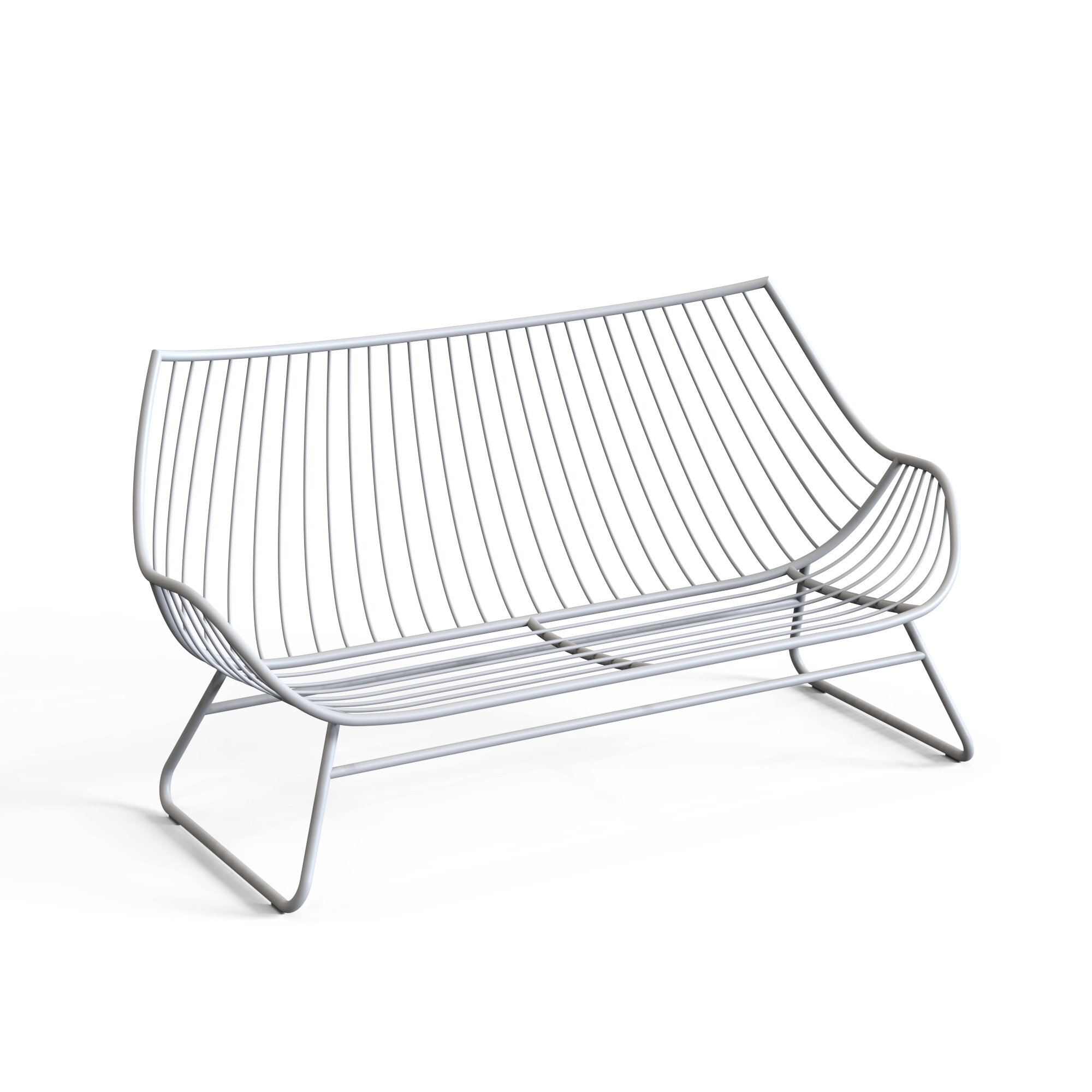 Die Kombination aus strukturiertem Drahtgestell und weicher Polsterung schafft eine ausgewogene Präsenz und funktionale Ästhetik.