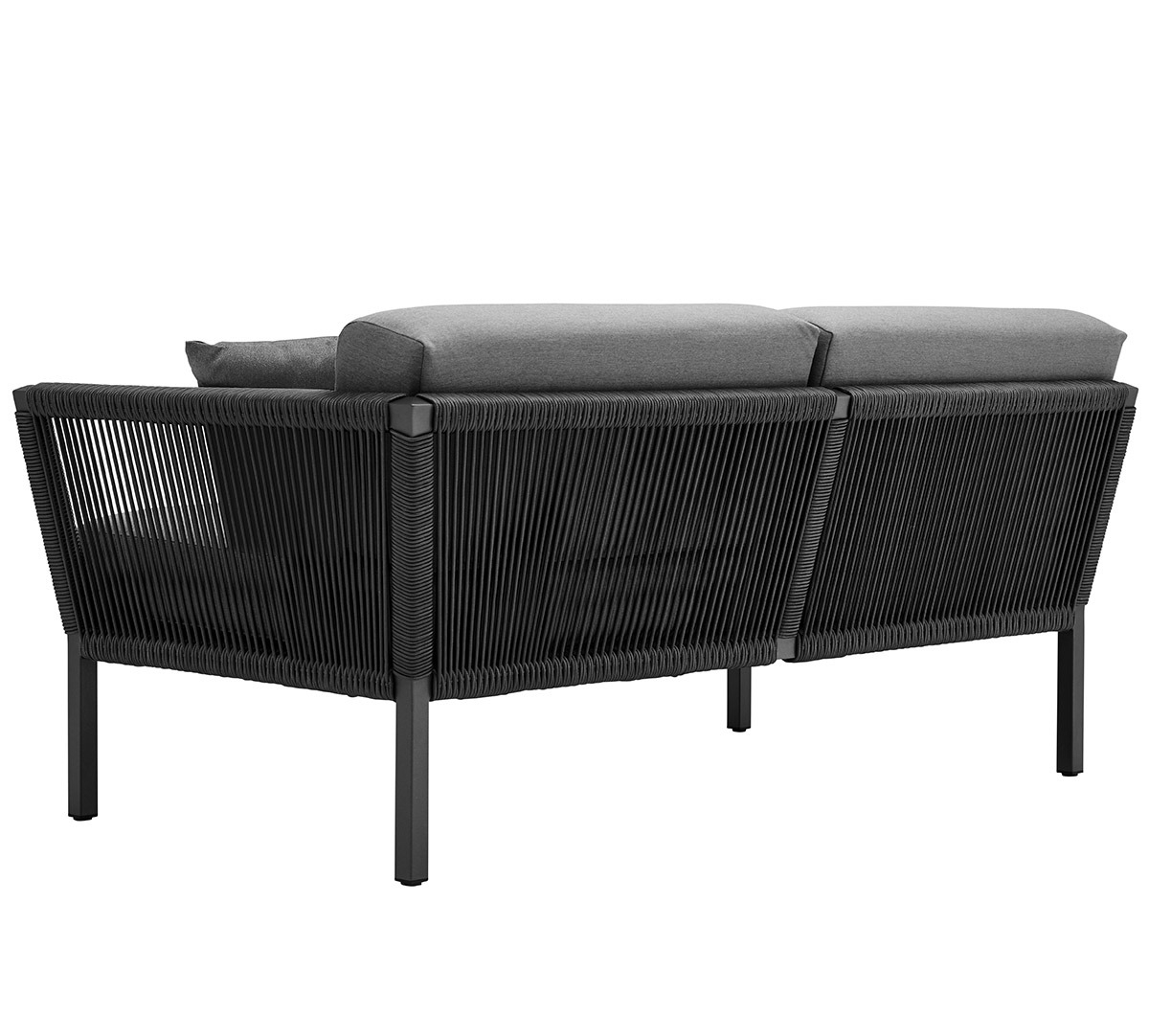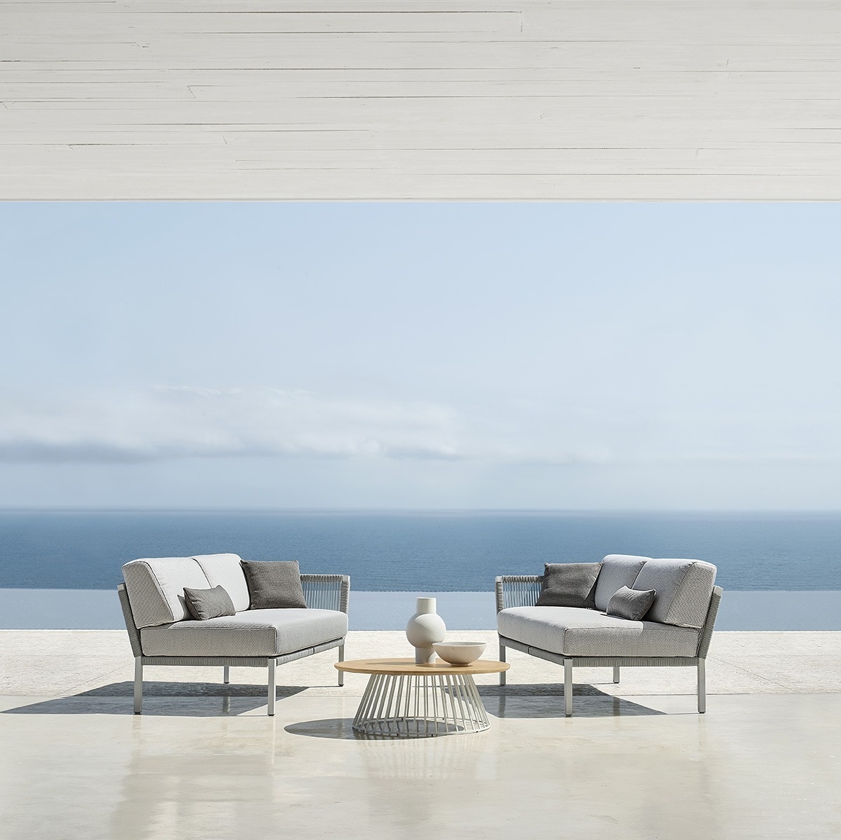 In dieses geradlinig gehaltene Aluminiumgestell ist mit einer Soft-Touch-Schnur eine offene, komfortable Sitzfläche geflochten. Diese besondere Querflechtung verleiht der stilvollen Recamiere eine optische Leichtigkeit bei höchstem Designanspruch und Komfort.